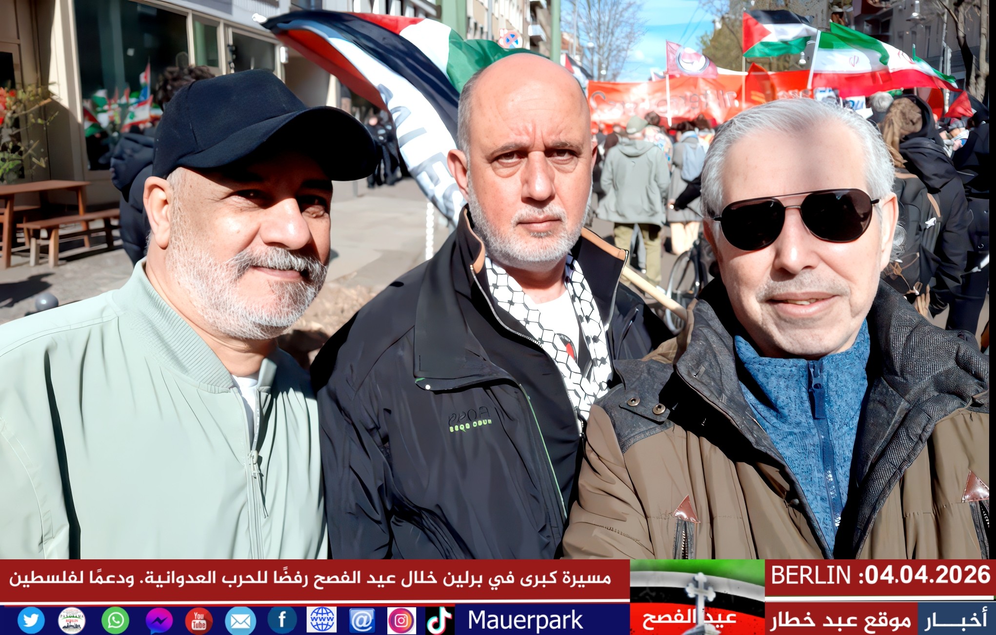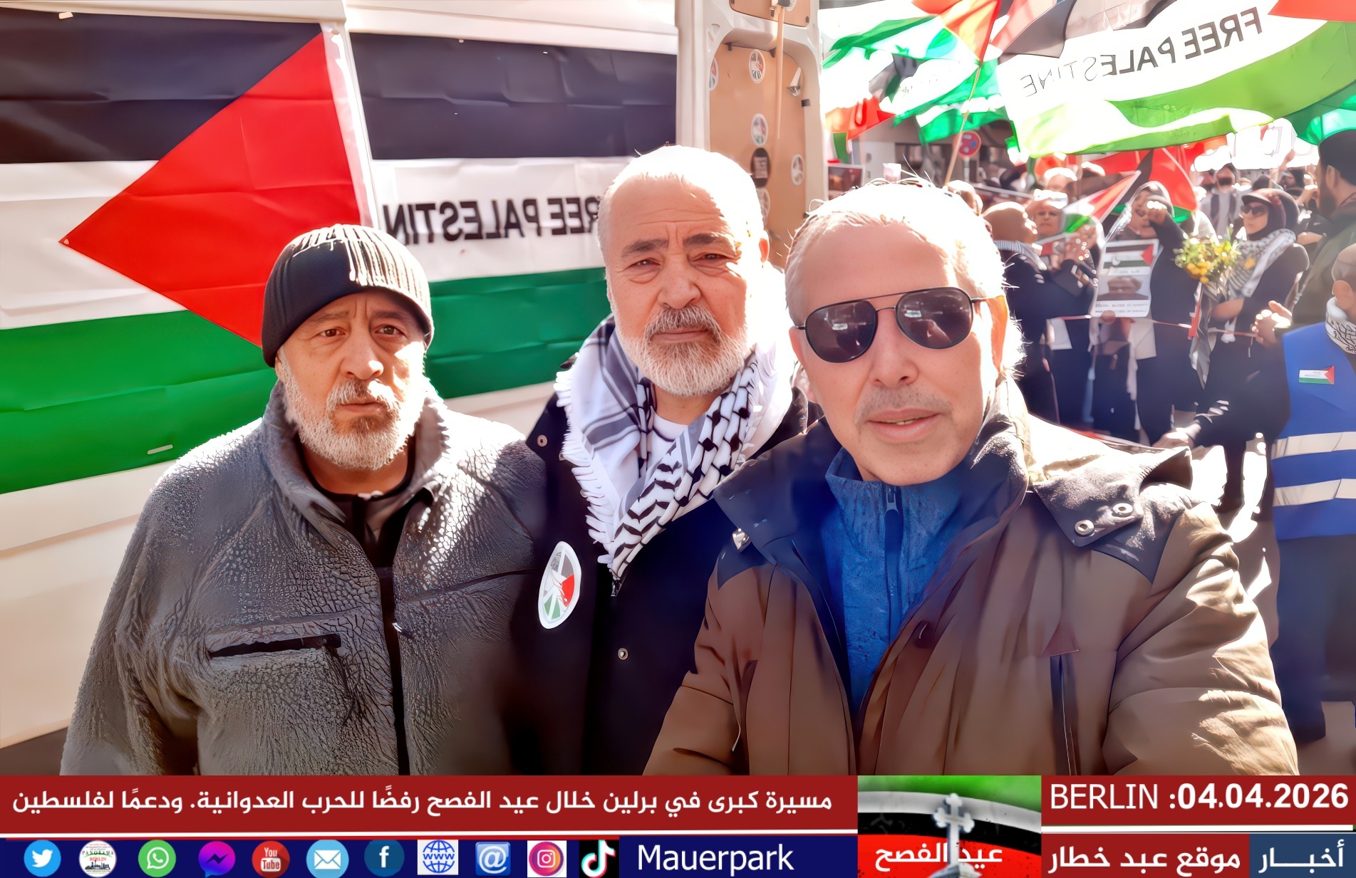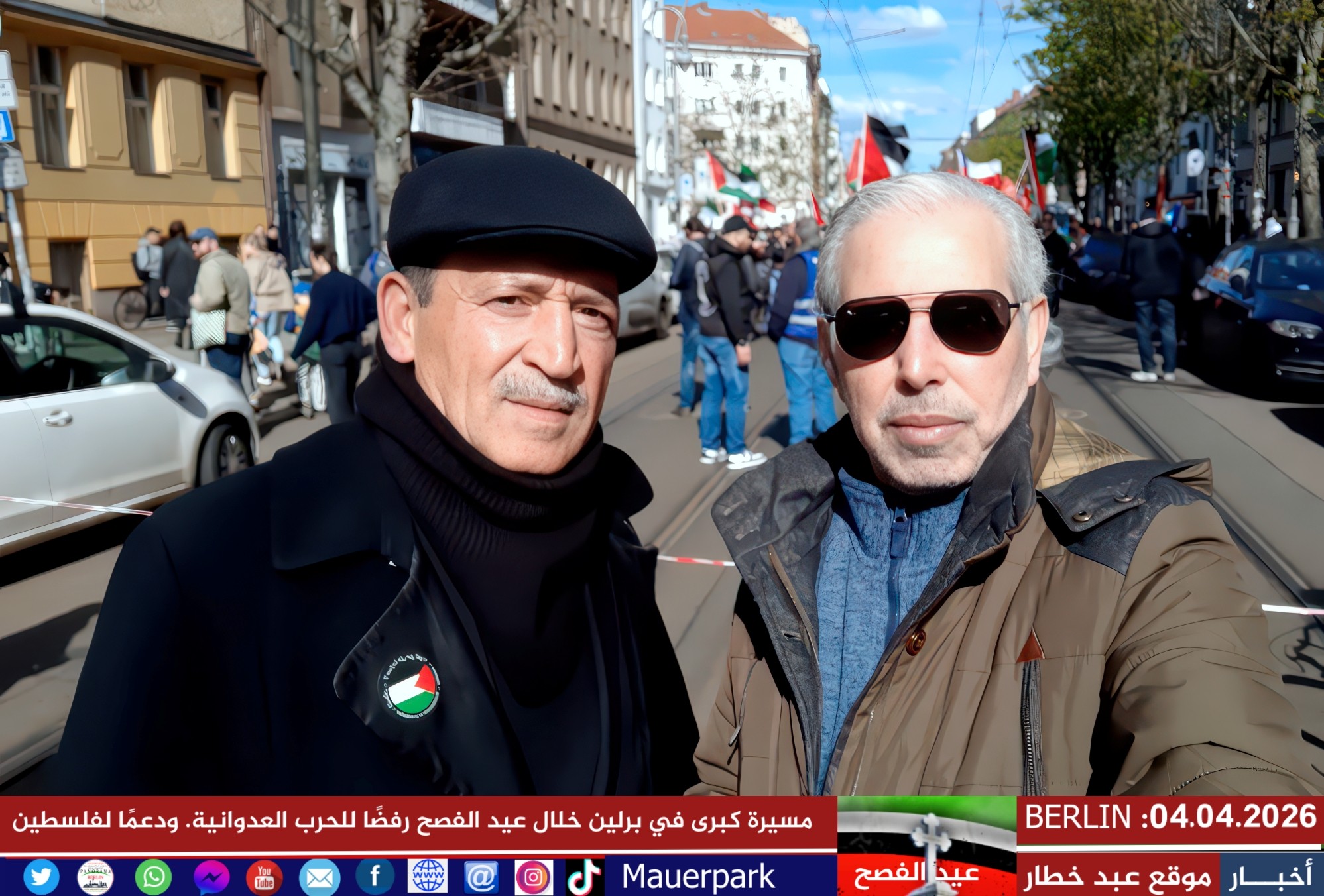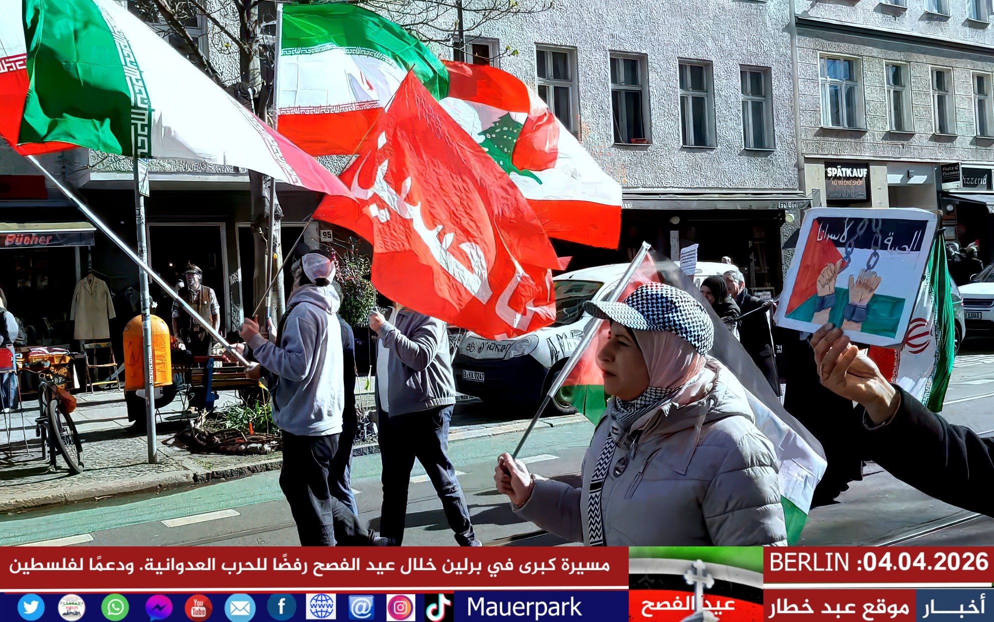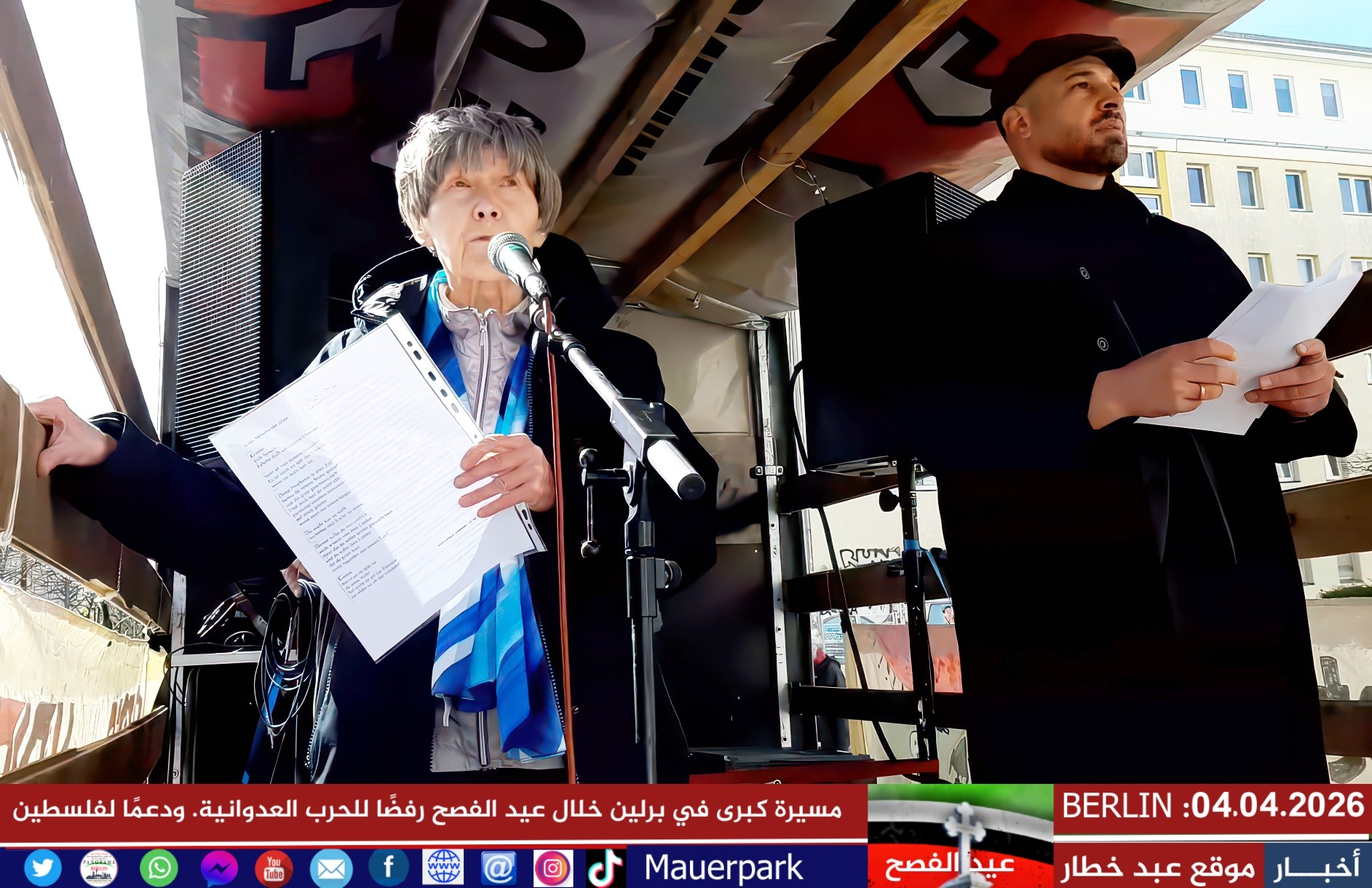 شهدت العاصمة الألمانية برلين اليوم السبت، الموافق 04 أبريل 2026، واحدة من أكبر المسيرات السياسية التي تشهدها المدينة خلال عطلة عيد الفصح، حيث احتشد آلاف المتظاهرين في شوارع وسط المدينة استجابة لدعوات أطلقتها عدة قوى سياسية واجتماعية ألمانية ودولية، من بينها حركة السلام الألمانية، ومجموعات يسارية وتقدمية مثل KDP، إضافة إلى اللجنة الوطنية الفلسطينية الموحّدة في برلين، والتحالف الأممي المناهض للإمبريالية والصهيونية.