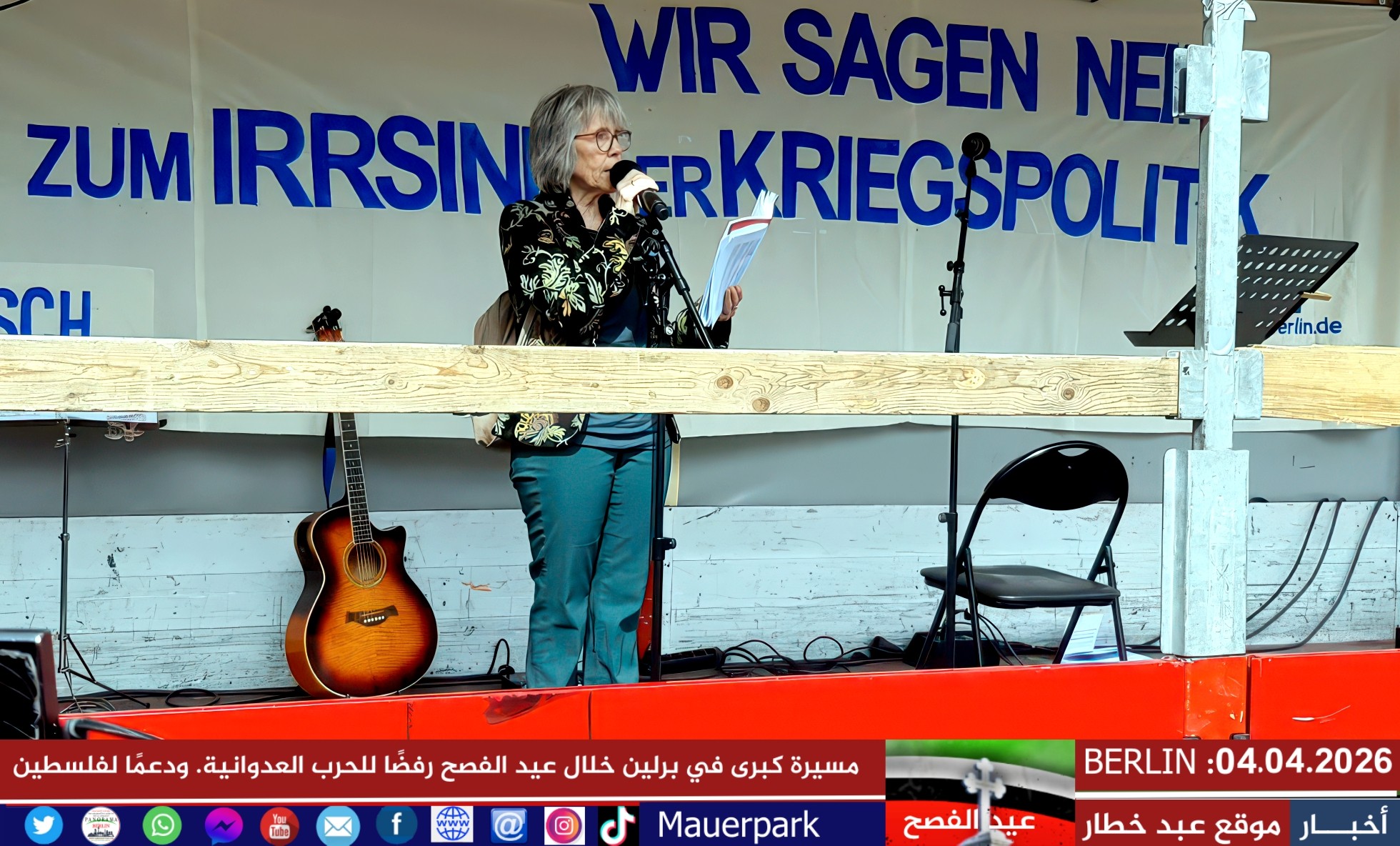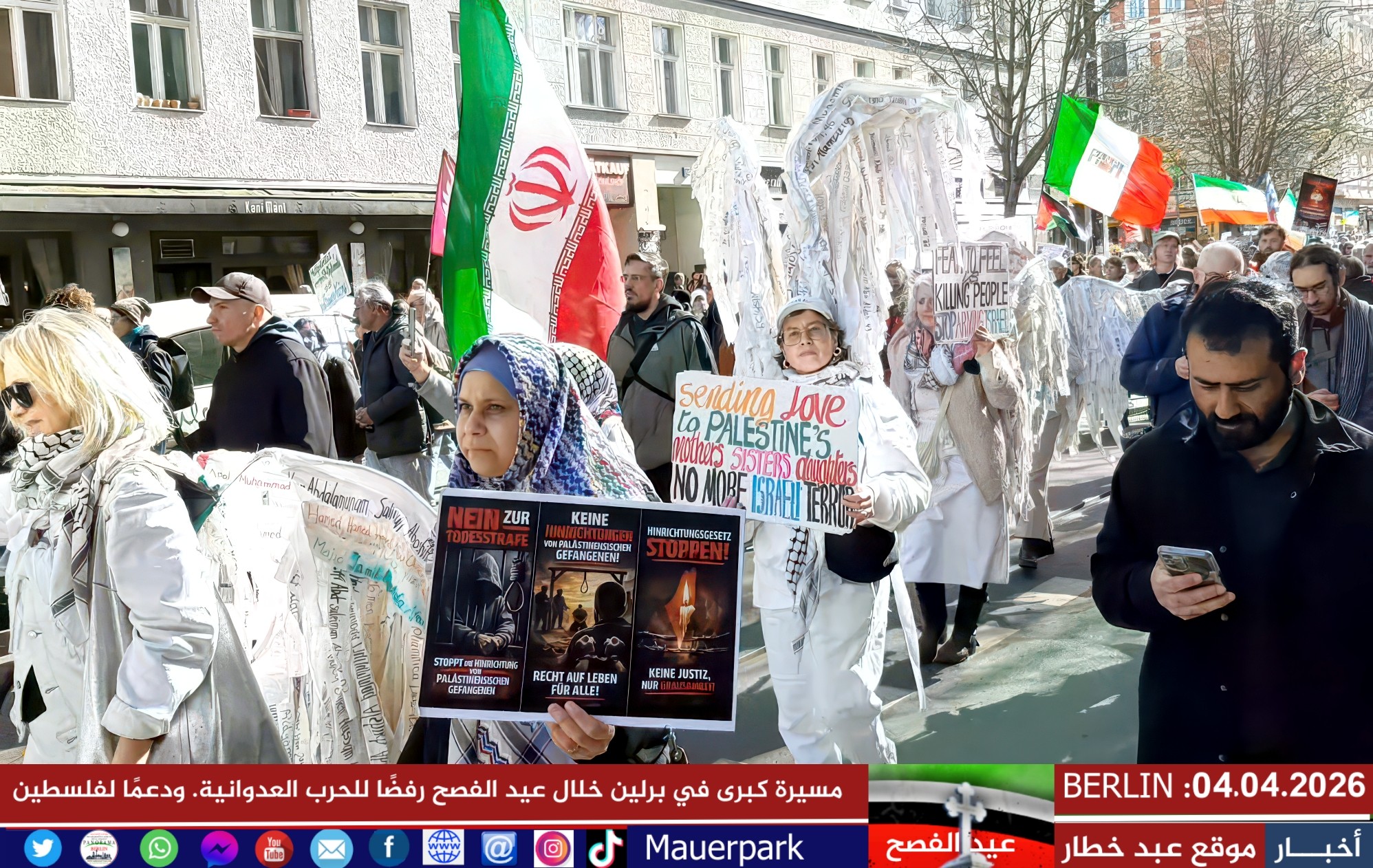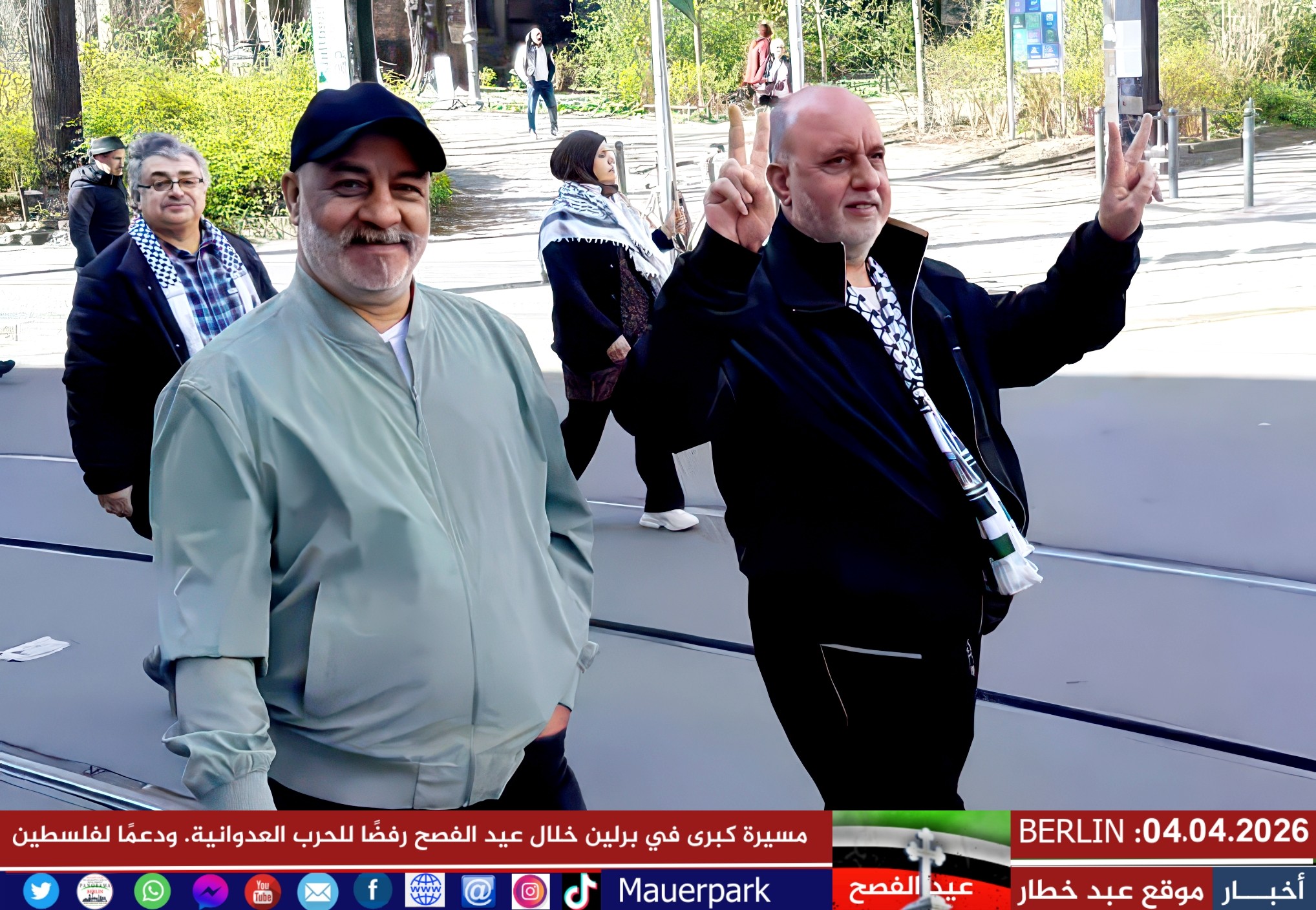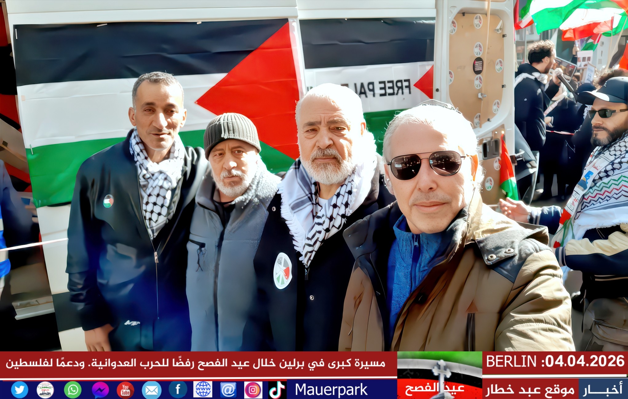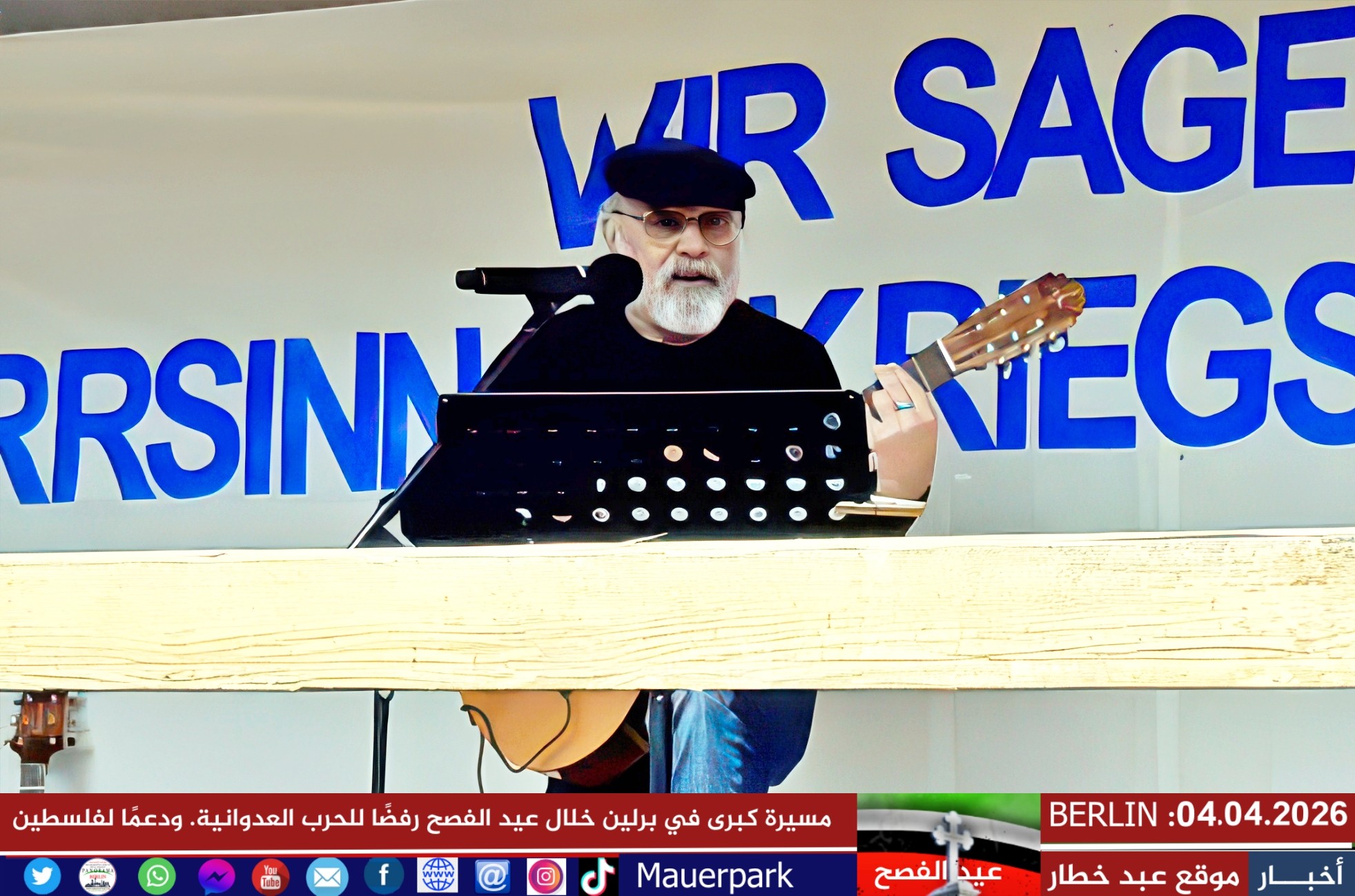 شهدت العاصمة الألمانية برلين اليوم السبت، الموافق 04 أبريل 2026، واحدة من أكبر المسيرات السياسية التي تشهدها المدينة خلال عطلة عيد الفصح، حيث احتشد آلاف المتظاهرين في شوارع وسط المدينة استجابة لدعوات أطلقتها عدة قوى سياسية واجتماعية ألمانية ودولية، من بينها حركة السلام الألمانية، ومجموعات يسارية وتقدمية مثل KDP، إضافة إلى اللجنة الوطنية الفلسطينية الموحّدة في برلين، والتحالف الأممي المناهض للإمبريالية والصهيونية.