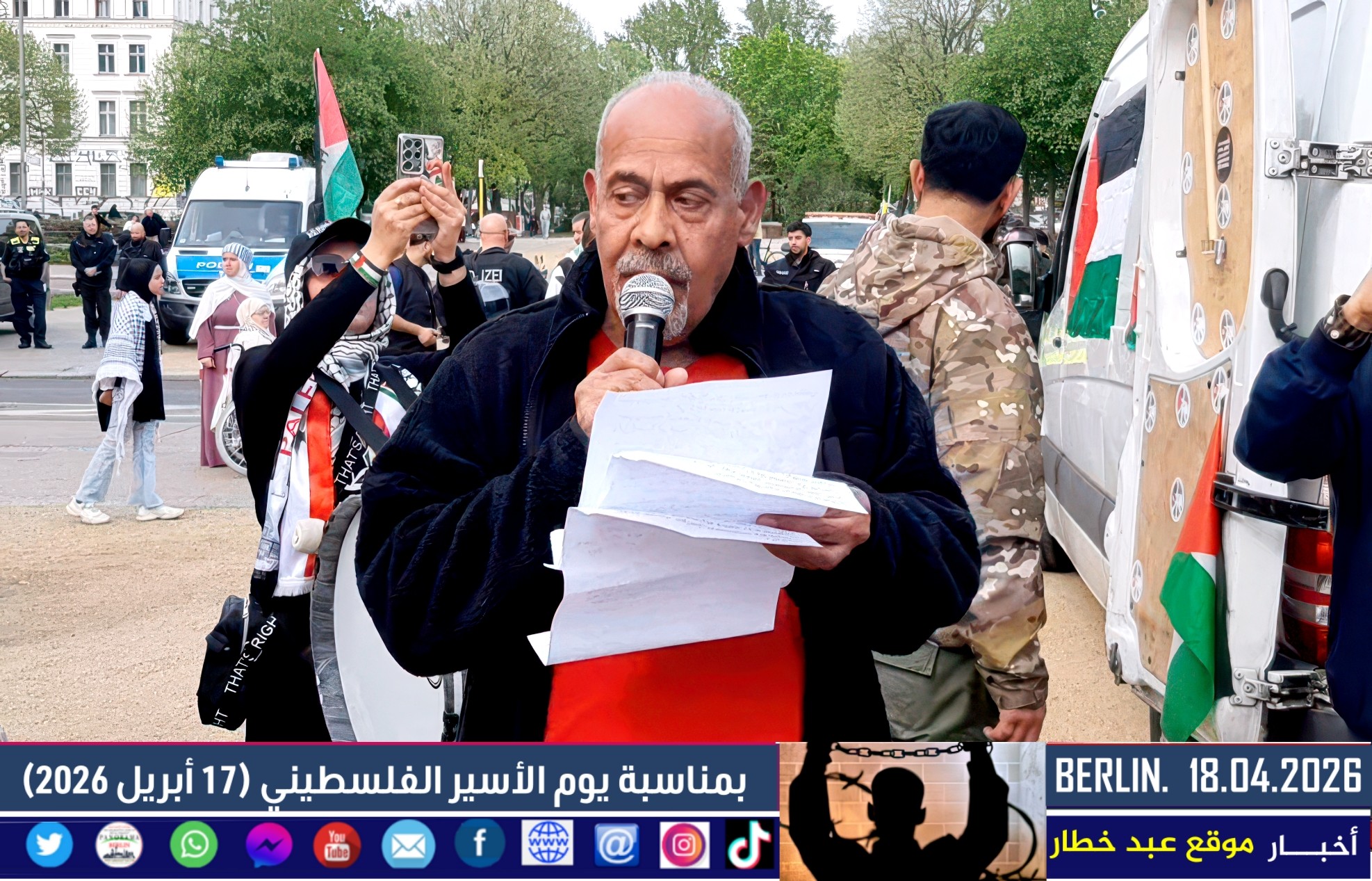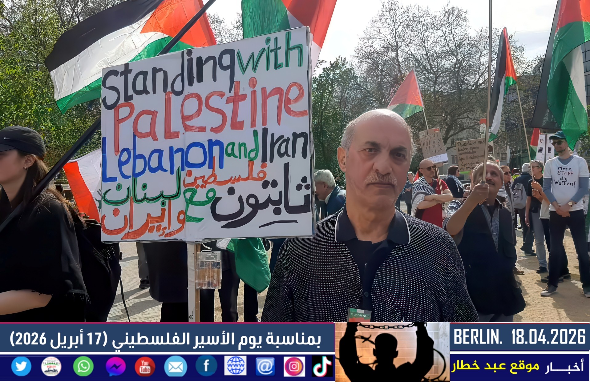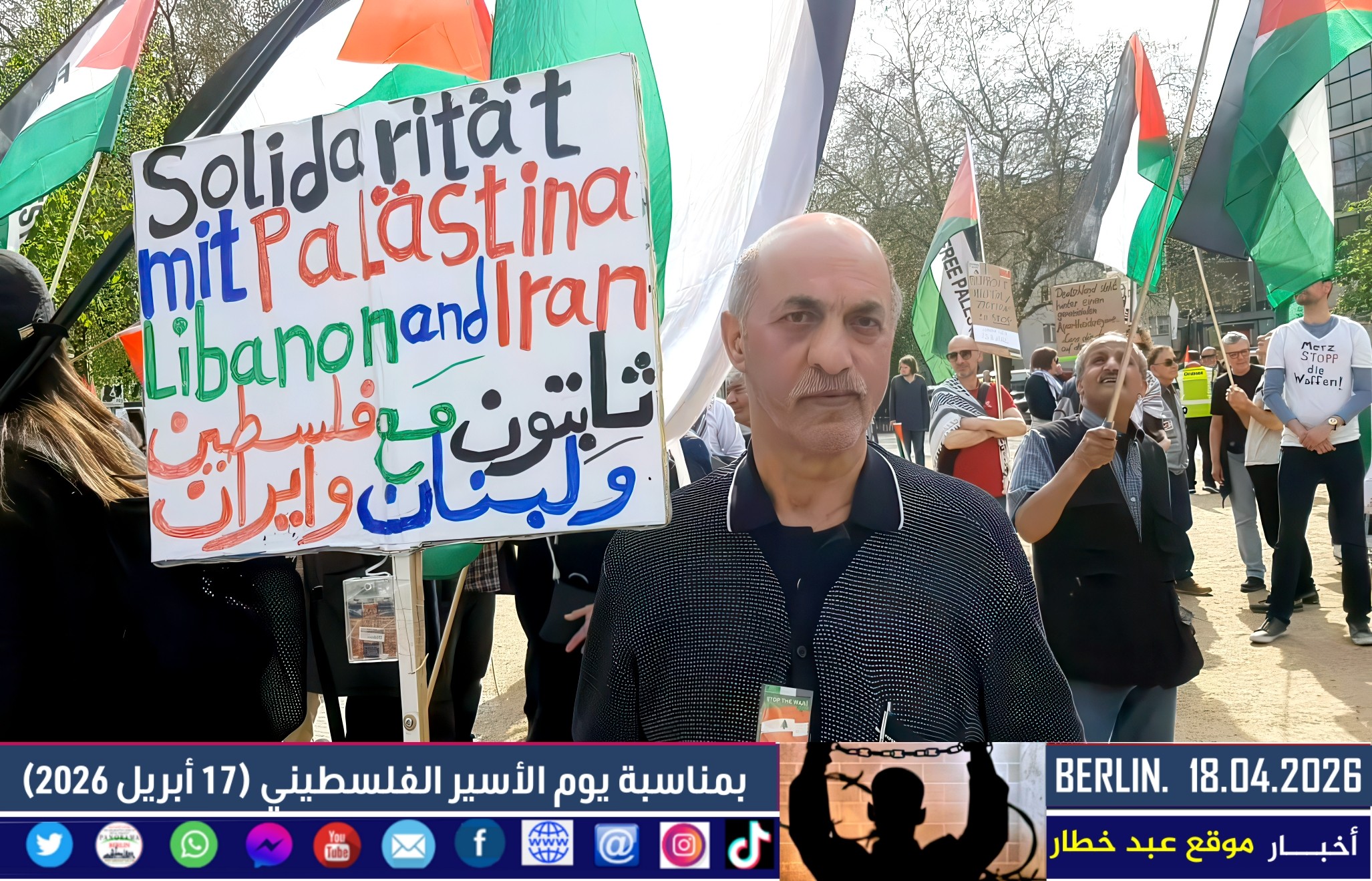 واختُتمت المظاهرة بالتأكيد على استمرار الفعاليات التضامنية في برلين وعدد من المدن الأوروبية، وعلى أهمية بناء جبهة واسعة من القوى التقدمية والحقوقية للدفاع عن حقوق الأسرى الفلسطينيين وكرامتهم، وللمطالبة بوقف السياسات التي تؤدي إلى تصعيد العنف في المنطقة.