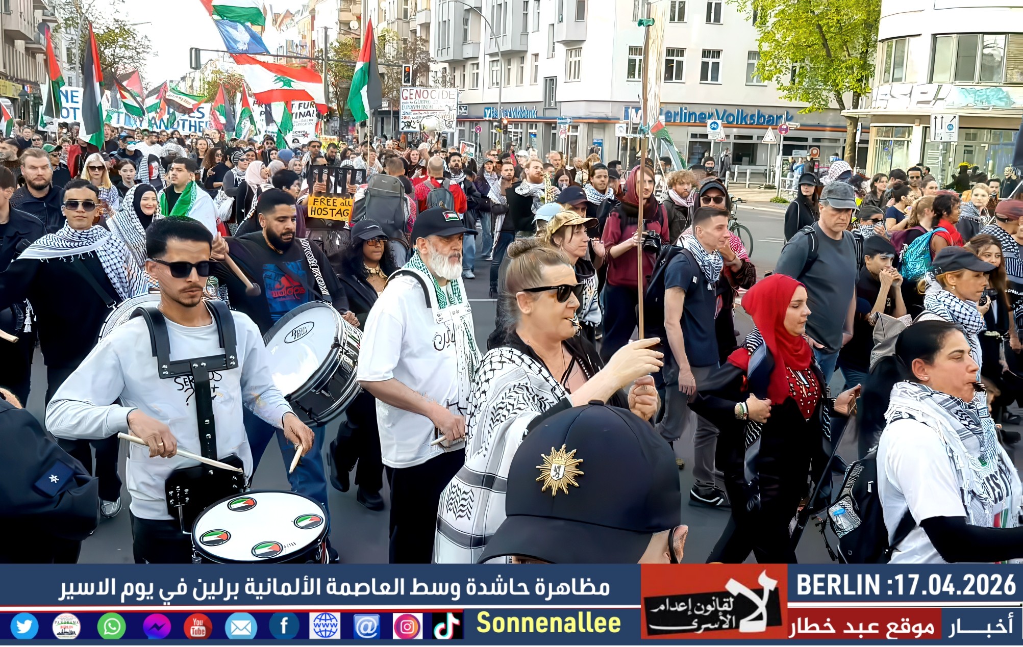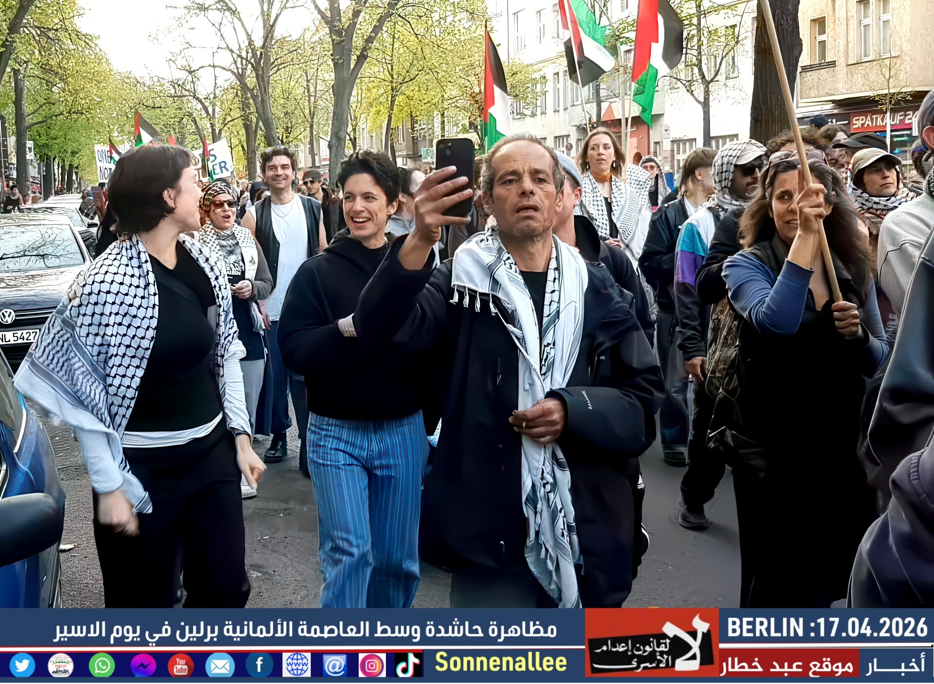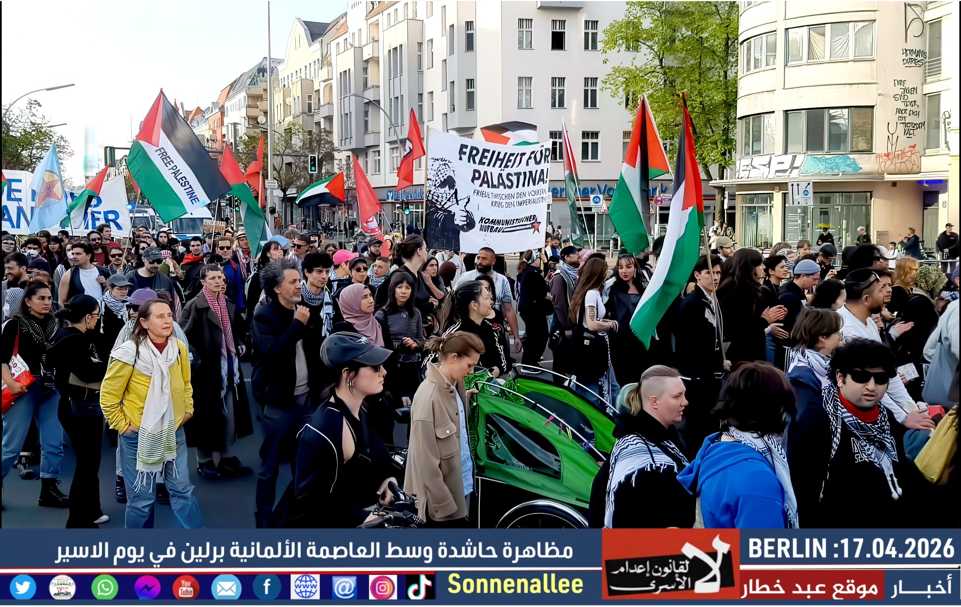 مسيرة حاشدة دعت إليها مجموعات فلسطينية وألمانية، وذلك إحياءً لـ يوم الأسير الفلسطيني وتضامنًا مع آلاف الأسرى في سجون الاحتلال.