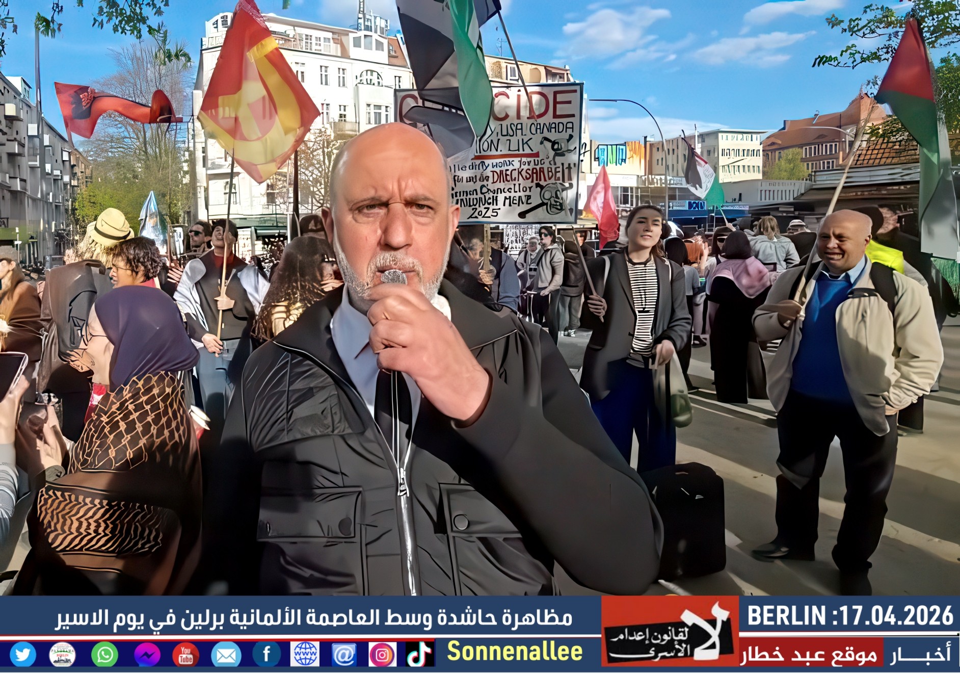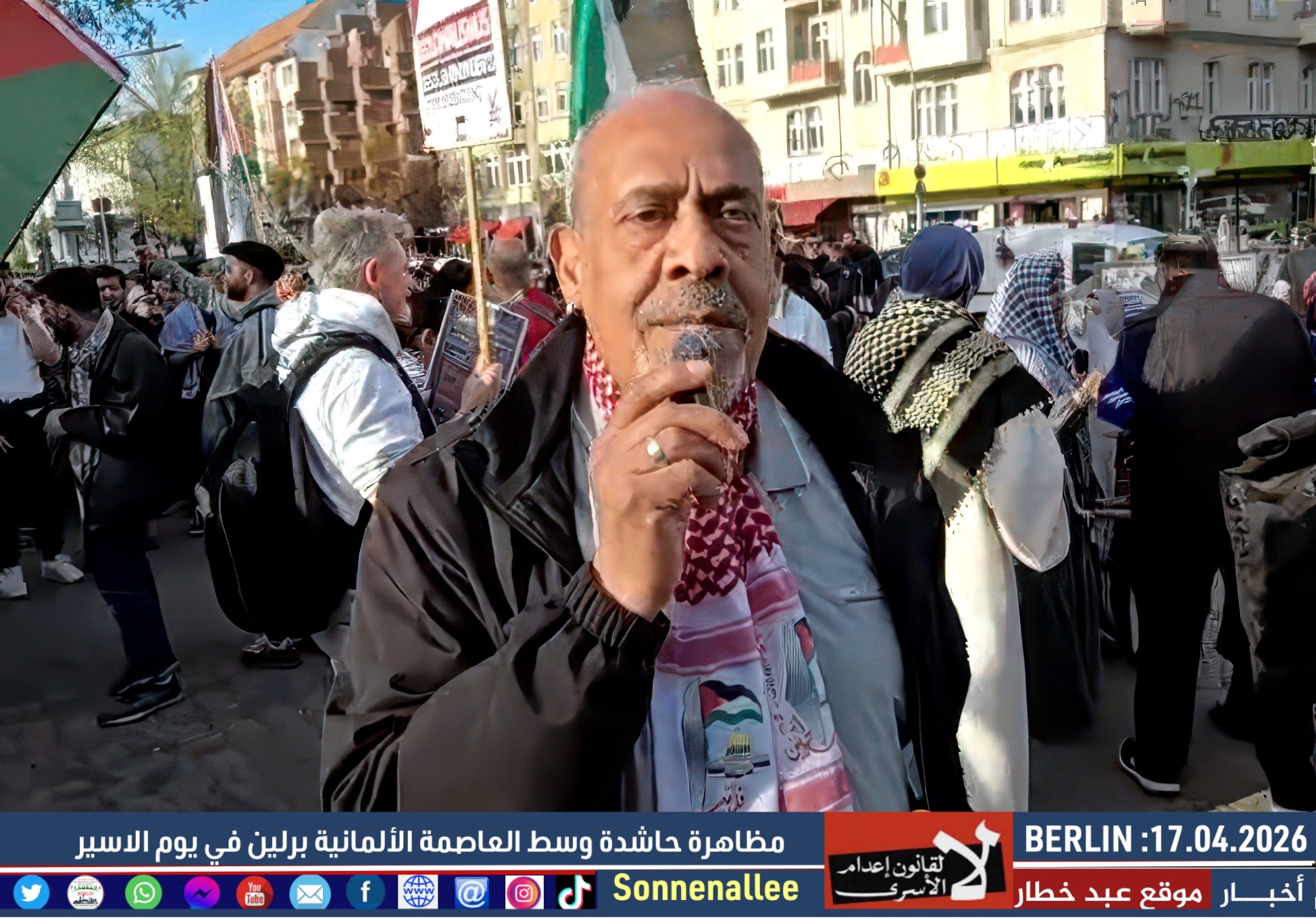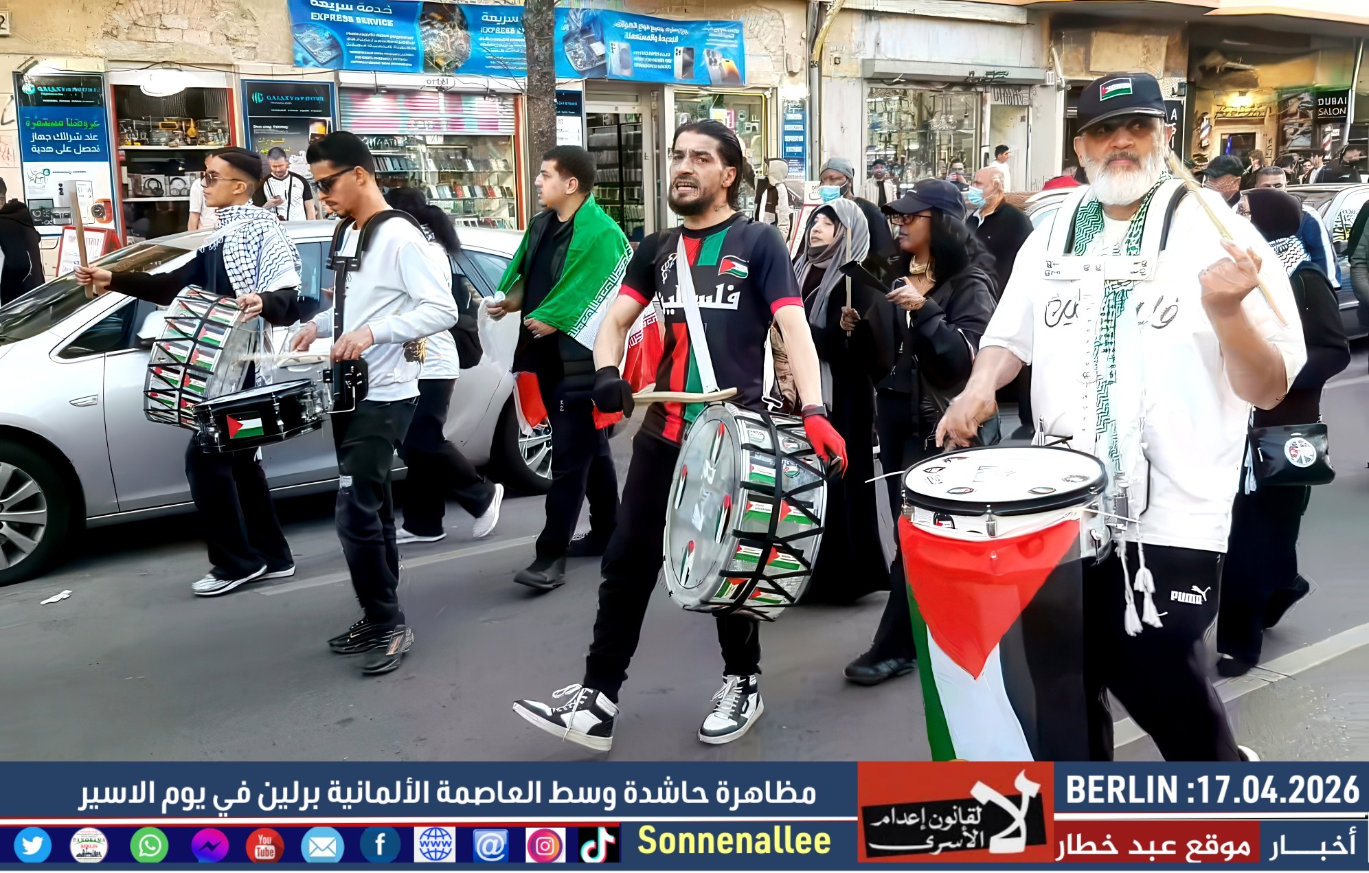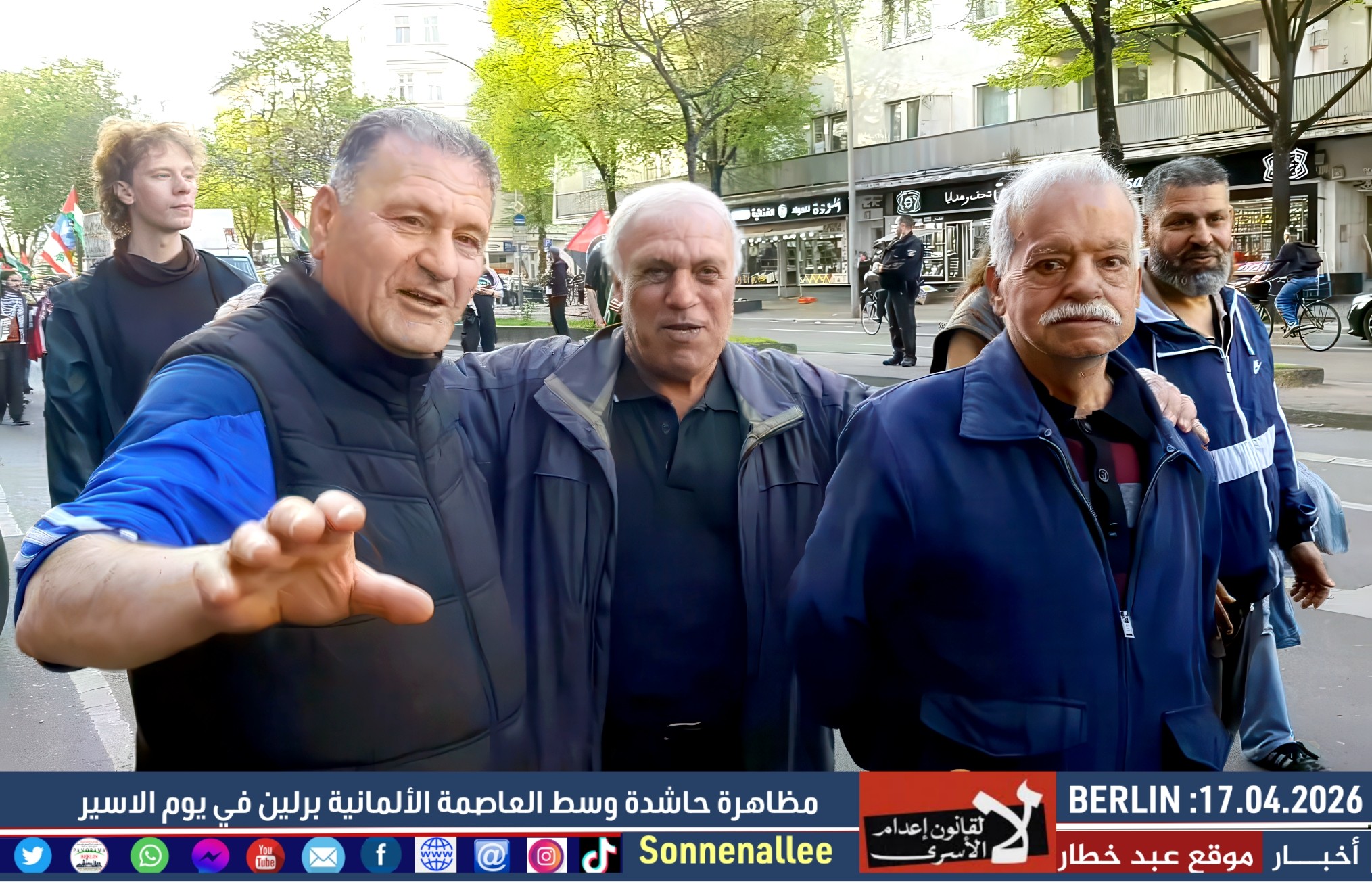مسيرة حاشدة دعت إليها مجموعات فلسطينية وألمانية، وذلك إحياءً لـ يوم الأسير الفلسطيني وتضامنًا مع آلاف الأسرى في سجون الاحتلال.