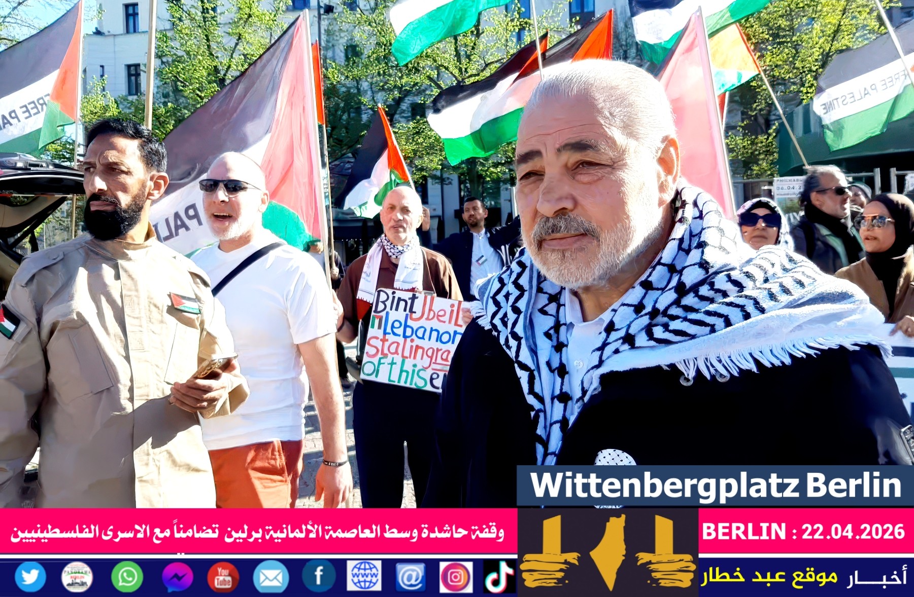 وقفة حاشدة وسط العاصمة الألمانية برلين تضامنا مع الاسرى الفلسطينيين وتنديداً بالاعتداءات الإسرائيلية على الأسرى الفلسطينيين ورفضاً لقانون