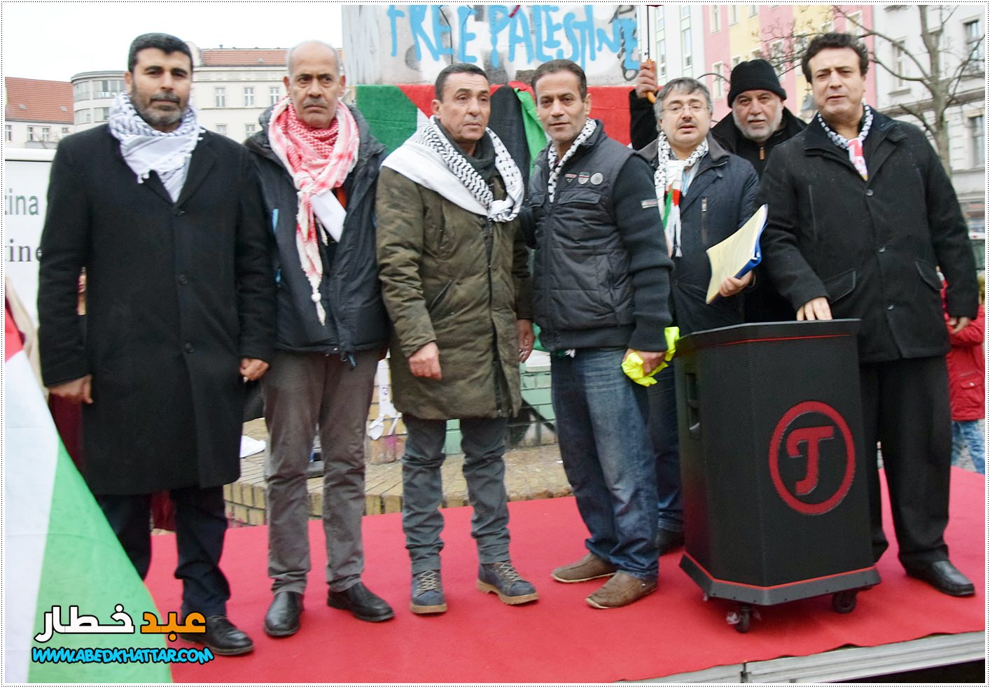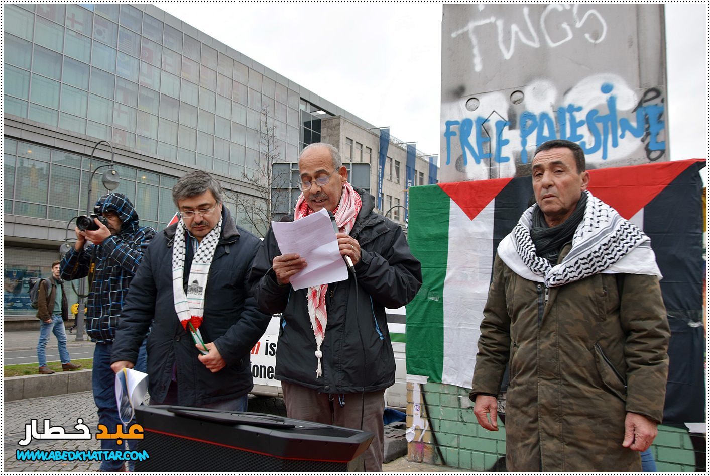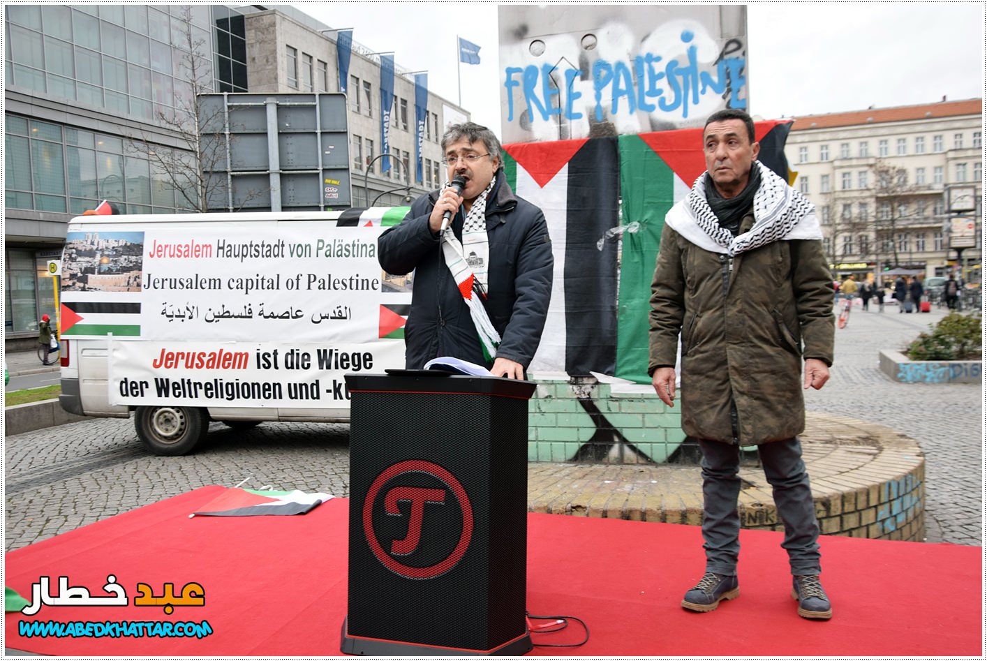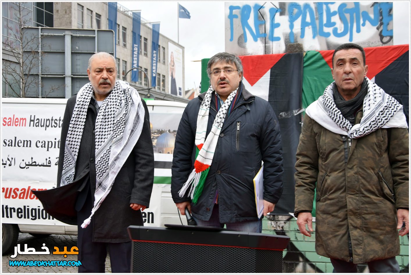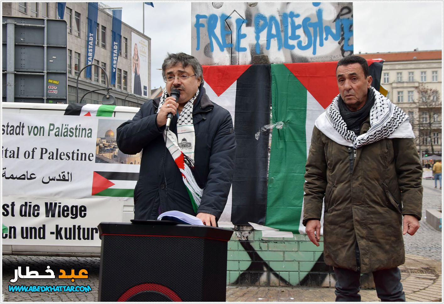 وقد ألقى عدد من الشخصيات الوطنية الفلسطينية ورؤساء الجمعيات والمؤسسات العربية والألمانيّة في برلين كلمات خلال الفعاليّة ،وجهوا خلالها نداء إلى الحكومة الألمانية وإلى نواب البرلمان الألماني والى الحكومات الأوروبيّة يطالب من خلاله إستمرار رفضهم للقرار الأمريكي والضّغط على الإدارة الأمريكية للتراجع عن قرارها حول القدس وإنصاف الشّعب الفلسطيني بإقامة دولته المستقلّة كاملة السّيادة وعاصمتها القدس والعمل على تطبيق القرارات الدوليّة التي تنصّ على عودة اللاجئين الفلسطينيين الى أرضهم التي هجّروا منها وخاصة القرار 194.