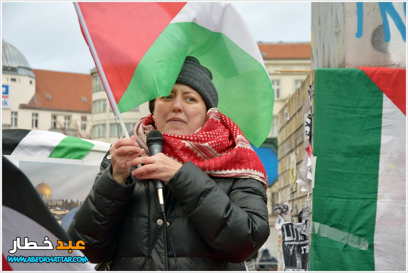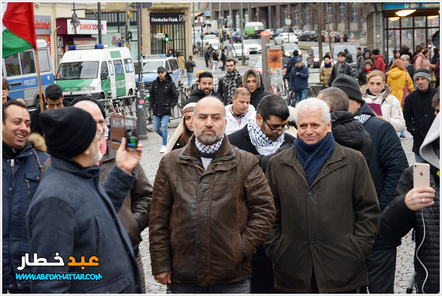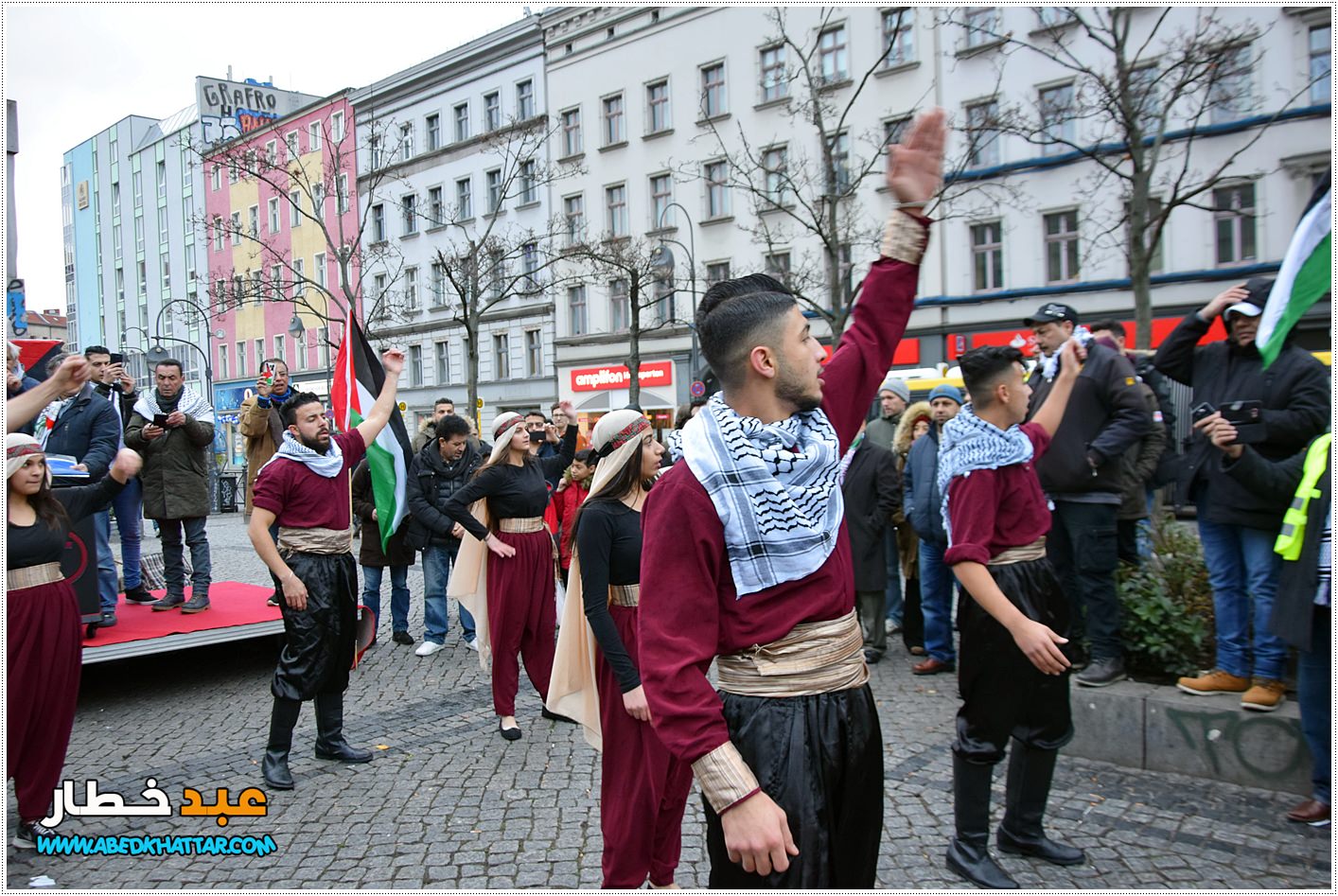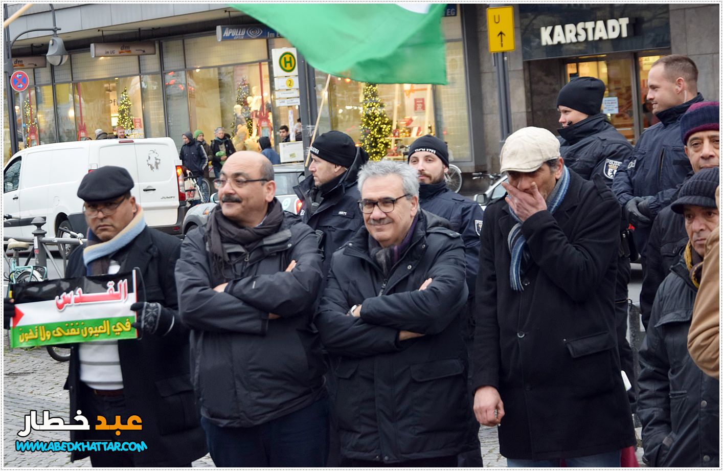 وقد شهدت الفعالية مشاركة جمهور من الجالية الفلسطينية والعربية في برلين الألمان الدّاعمين للحقّ الفلسطيني، وألقيت كلمات باللغة الألمانية والإنكليزية والعربية ورفعوا خلالها شعارات مناهضة لقرار الرئيس الأمريكي دونالد ترامب وللسياسة الأمريكية المنحازة لصالح الإحتلال الإسرائيلي، وطالبوا الإدارة الأمريكية بالتراجع عن القرار الجائر الذي يمس الحقوق الفلسطينية والمقدسات الإسلامية والمسيحية في مدينة القدس.