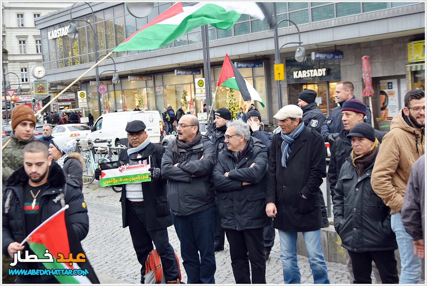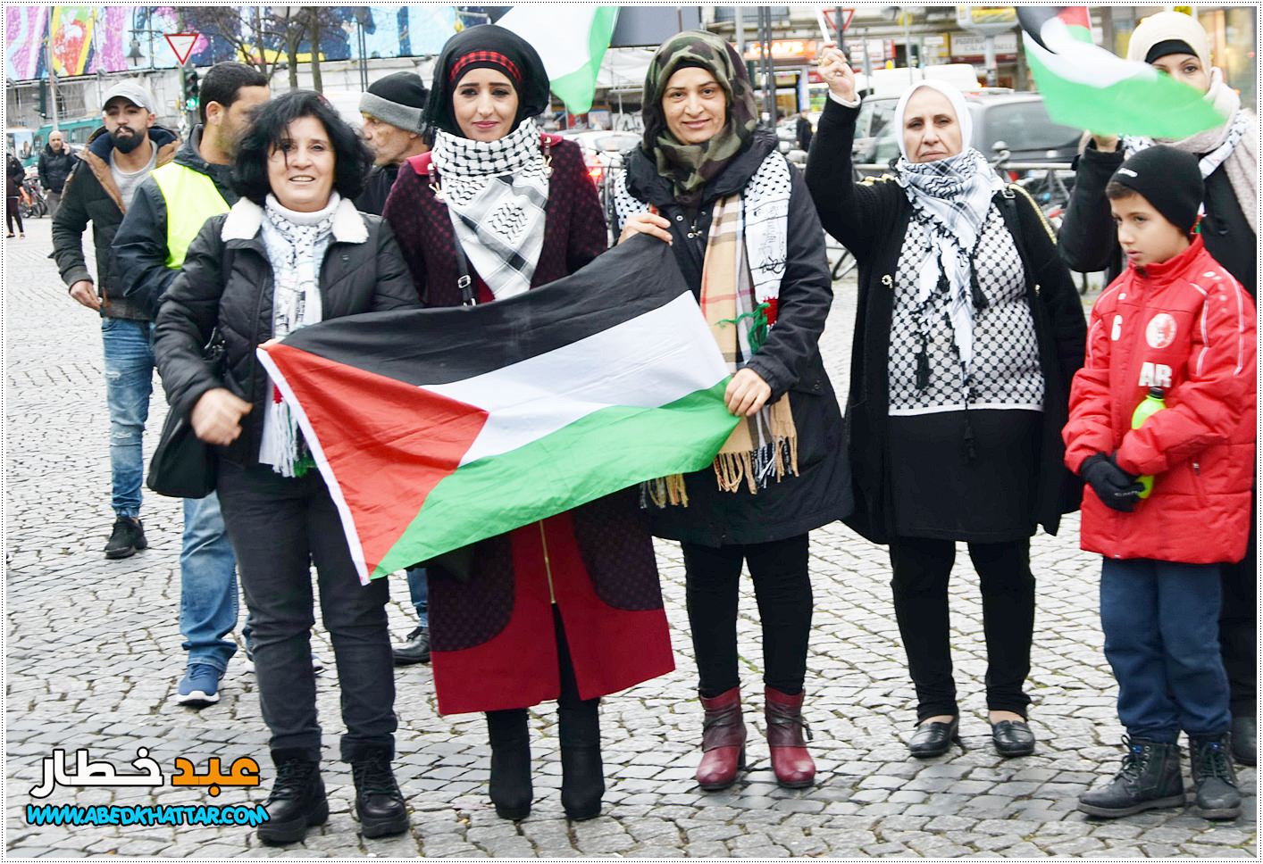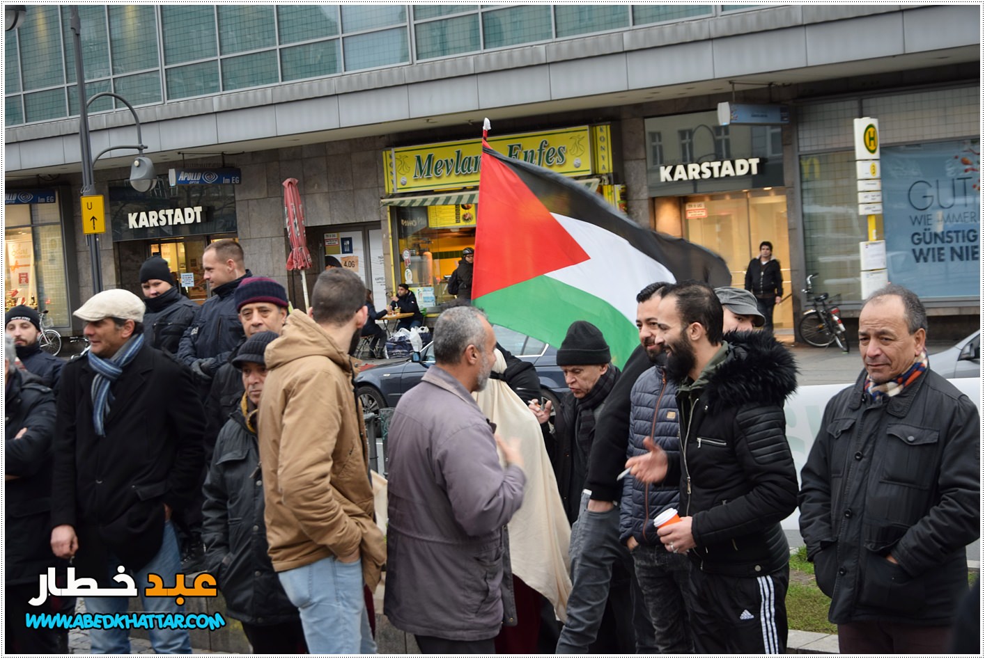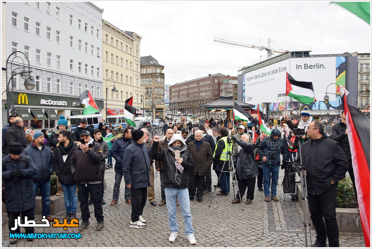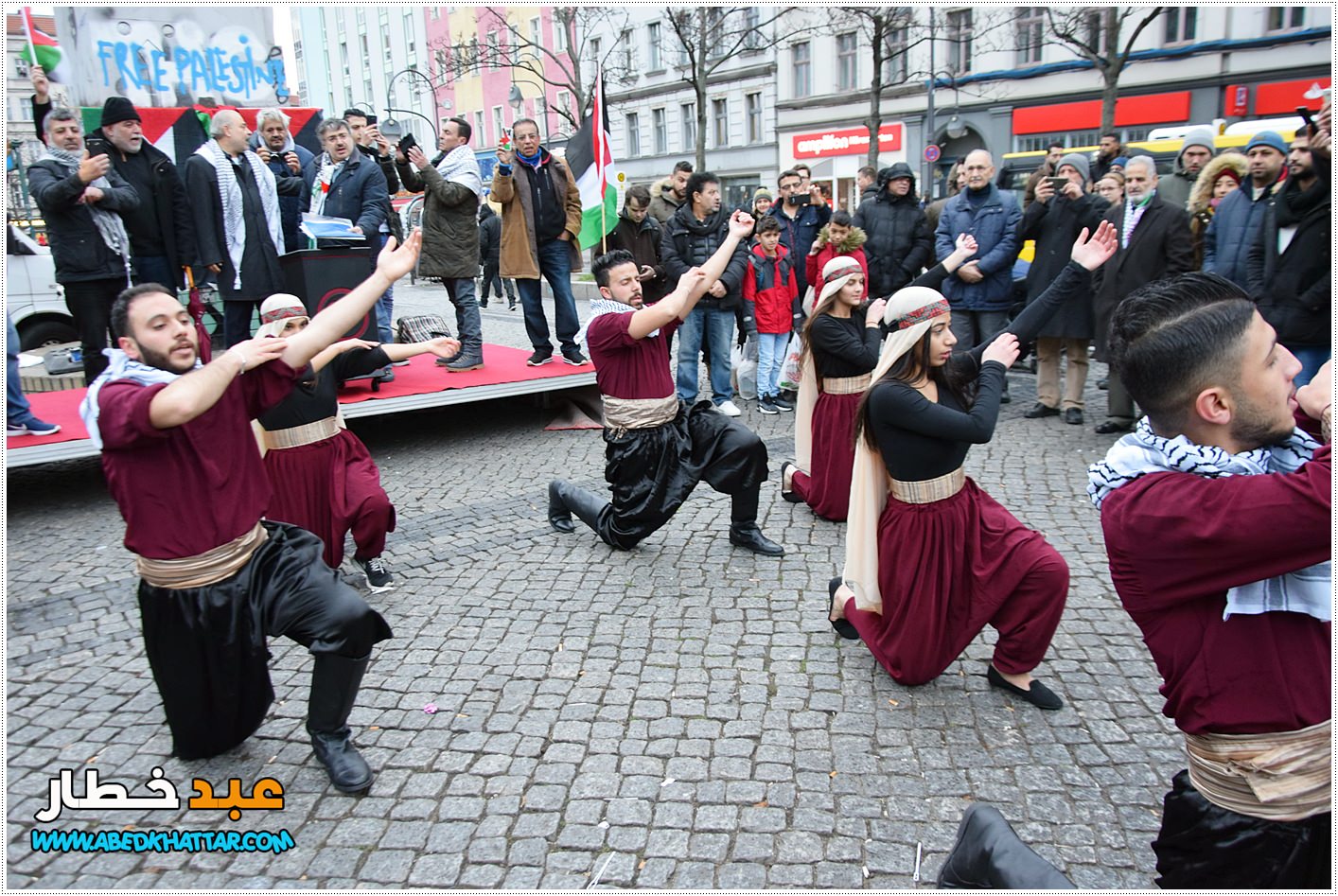 وقد شهدت الفعالية مشاركة جمهور من الجالية الفلسطينية والعربية في برلين الألمان الدّاعمين للحقّ الفلسطيني، وألقيت كلمات باللغة الألمانية والإنكليزية والعربية ورفعوا خلالها شعارات مناهضة لقرار الرئيس الأمريكي دونالد ترامب وللسياسة الأمريكية المنحازة لصالح الإحتلال الإسرائيلي، وطالبوا الإدارة الأمريكية بالتراجع عن القرار الجائر الذي يمس الحقوق الفلسطينية والمقدسات الإسلامية والمسيحية في مدينة القدس.