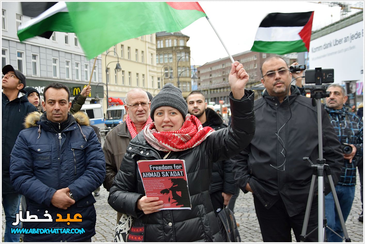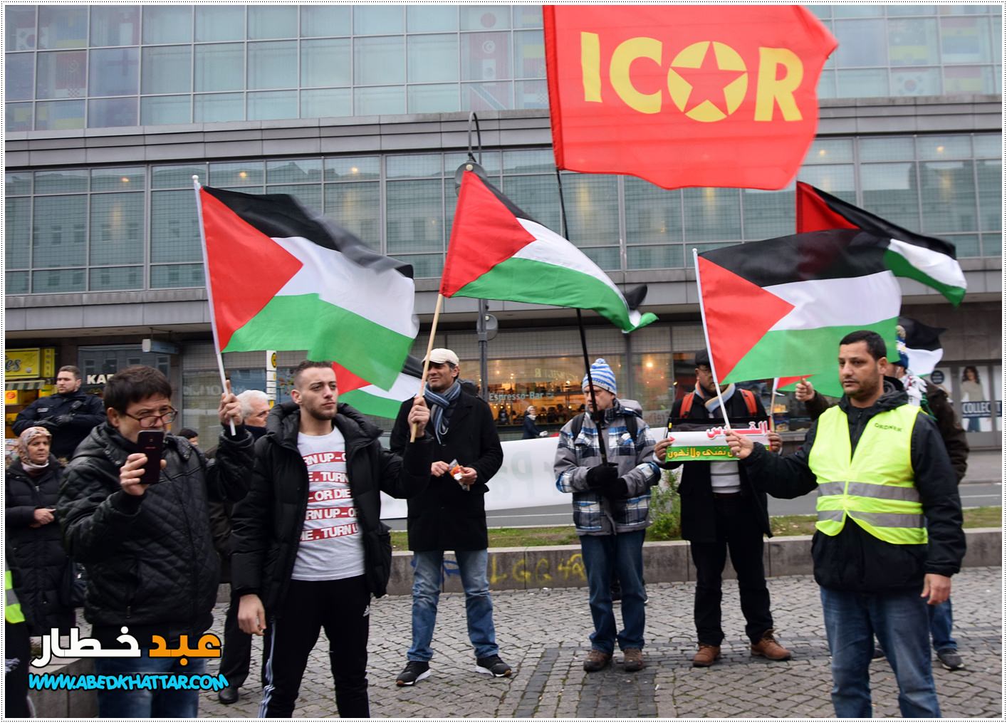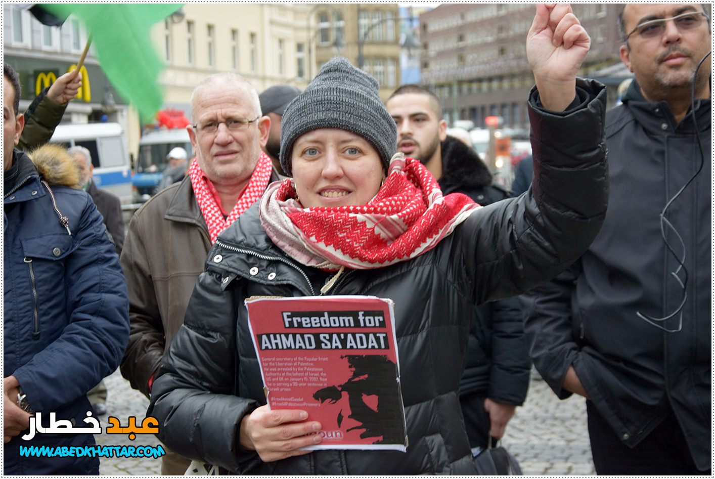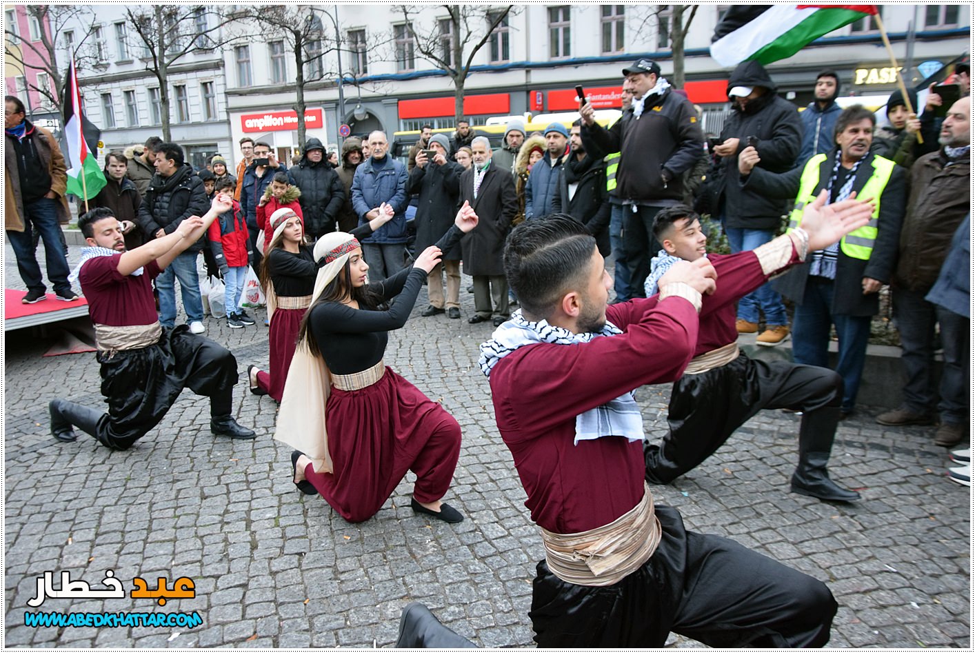 وقد شهدت الفعالية مشاركة جمهور من الجالية الفلسطينية والعربية في برلين الألمان الدّاعمين للحقّ الفلسطيني، وألقيت كلمات باللغة الألمانية والإنكليزية والعربية ورفعوا خلالها شعارات مناهضة لقرار الرئيس الأمريكي دونالد ترامب وللسياسة الأمريكية المنحازة لصالح الإحتلال الإسرائيلي، وطالبوا الإدارة الأمريكية بالتراجع عن القرار الجائر الذي يمس الحقوق الفلسطينية والمقدسات الإسلامية والمسيحية في مدينة القدس.