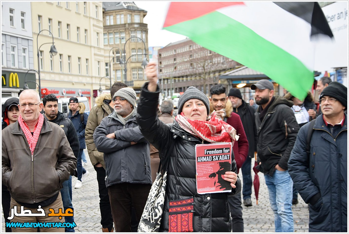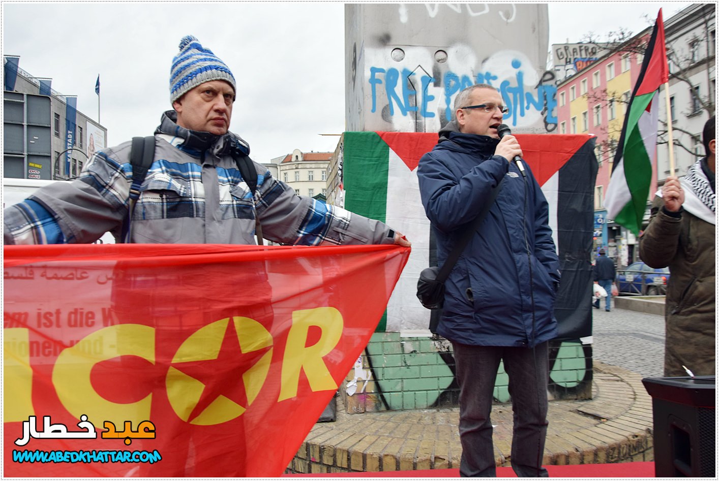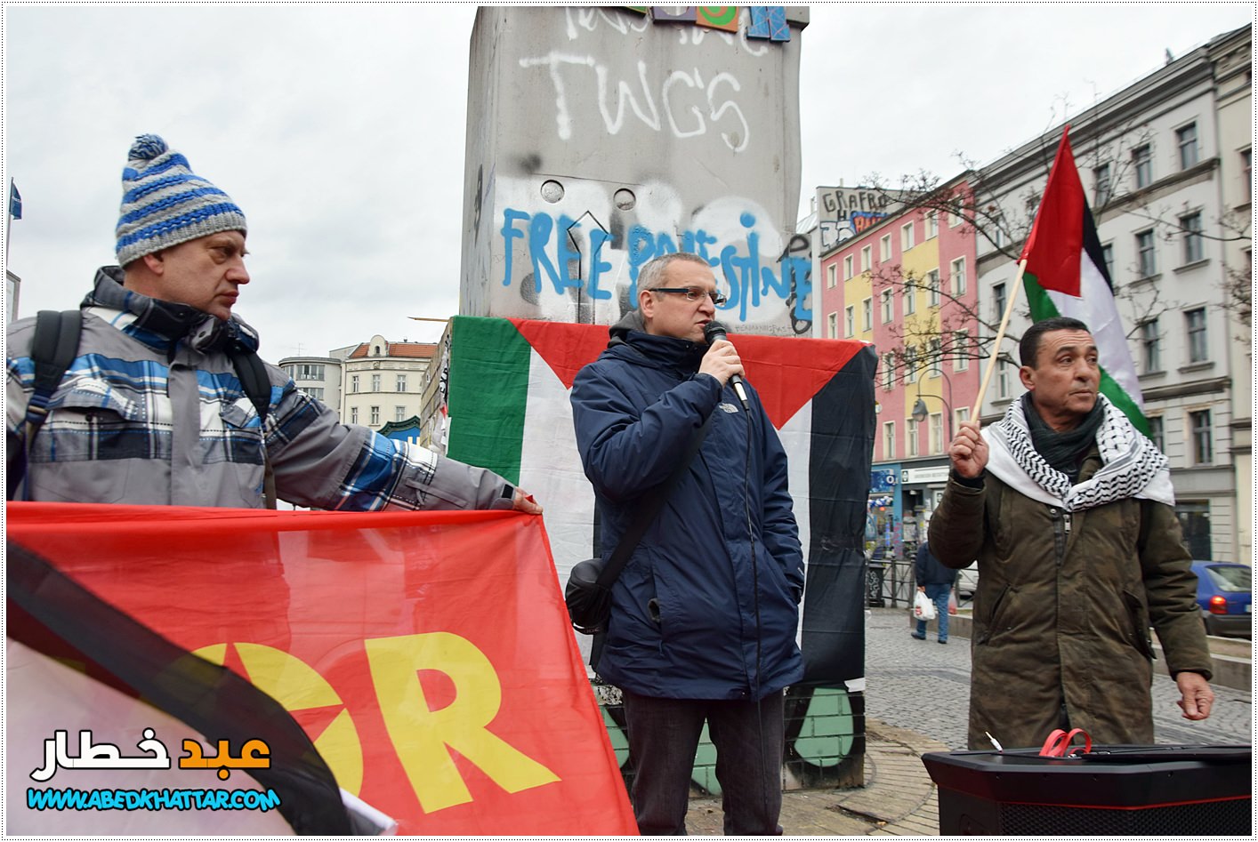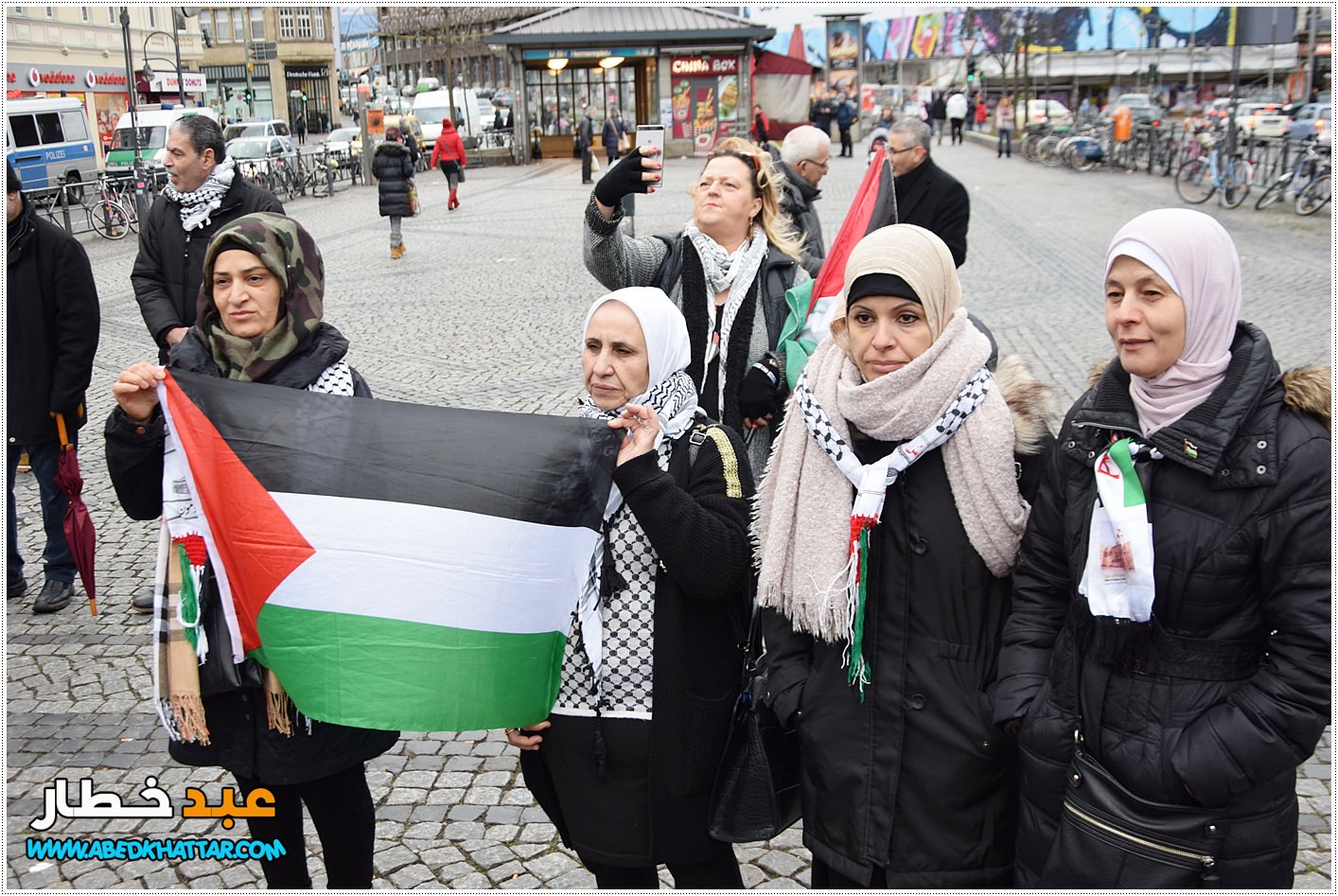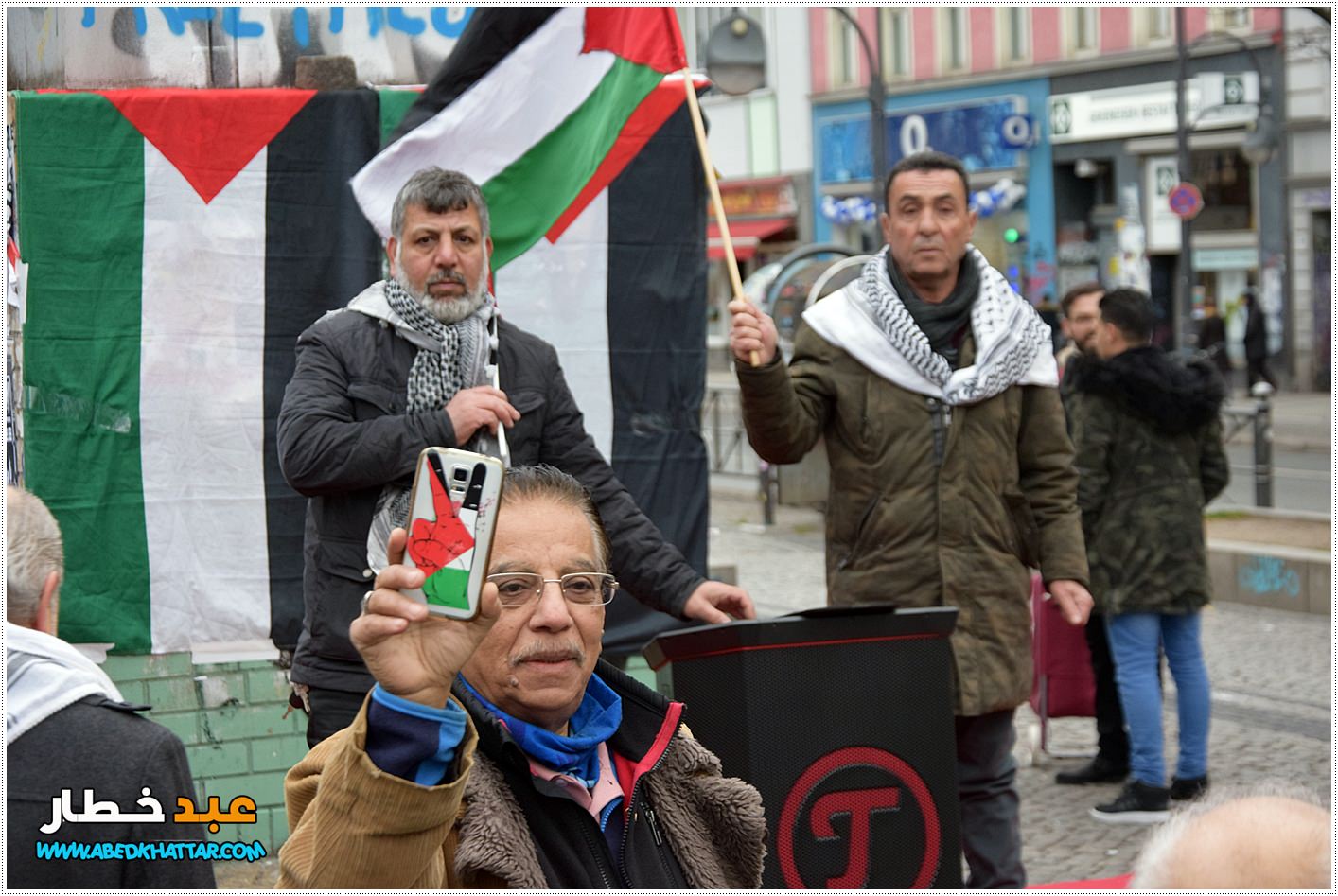 وقد شهدت الفعالية مشاركة جمهور من الجالية الفلسطينية والعربية في برلين الألمان الدّاعمين للحقّ الفلسطيني، وألقيت كلمات باللغة الألمانية والإنكليزية والعربية ورفعوا خلالها شعارات مناهضة لقرار الرئيس الأمريكي دونالد ترامب وللسياسة الأمريكية المنحازة لصالح الإحتلال الإسرائيلي، وطالبوا الإدارة الأمريكية بالتراجع عن القرار الجائر الذي يمس الحقوق الفلسطينية والمقدسات الإسلامية والمسيحية في مدينة القدس.