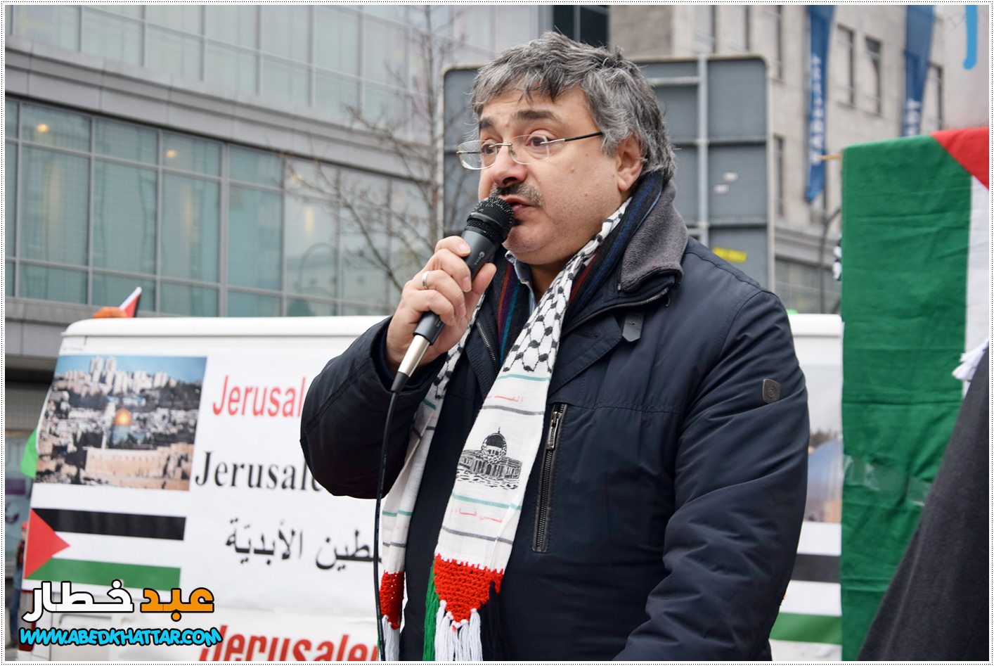 باسم القدس وفلسطين وباسم شعبنا العربي الفلسطيني في الوطن والشتات نحييكم جميعا ونحي كل رجل وامرأة وشاب وطفل جاء الى هنا اليوم ليشارك ويعلن رفضه لقرار الرئيس الاميركي ترامب