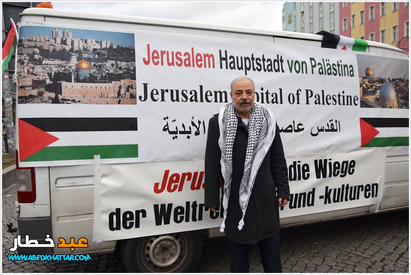 وأكد المتحدثون على تمسك أبناء الشعب العربي الفلسطيني في ألمانيا بهوية القدس العربية والإسلامية وبصفتها التاريخية كعاصمة موحدة وأبدية لفلسطين، وشددوا على أن محاولات القفز على الحقوق الفلسطينية وفرض واقع لا يخدم إلا الإحتلال وسلطته اللا شرعية على مدينة القدس هو أمر مرفوض من قبل مليار ونصف مسلم ومسيحي حول العالم، ولذلك، يقع على عاتق الحكومات الأوروبية مسؤولية وقف السياسات الغير مسؤولة من قبل الإدارة الأمريكية الحالية وكبح التغول الإحتلالي على مدينة القدس والأراضي الفلسطينية المحتلة.