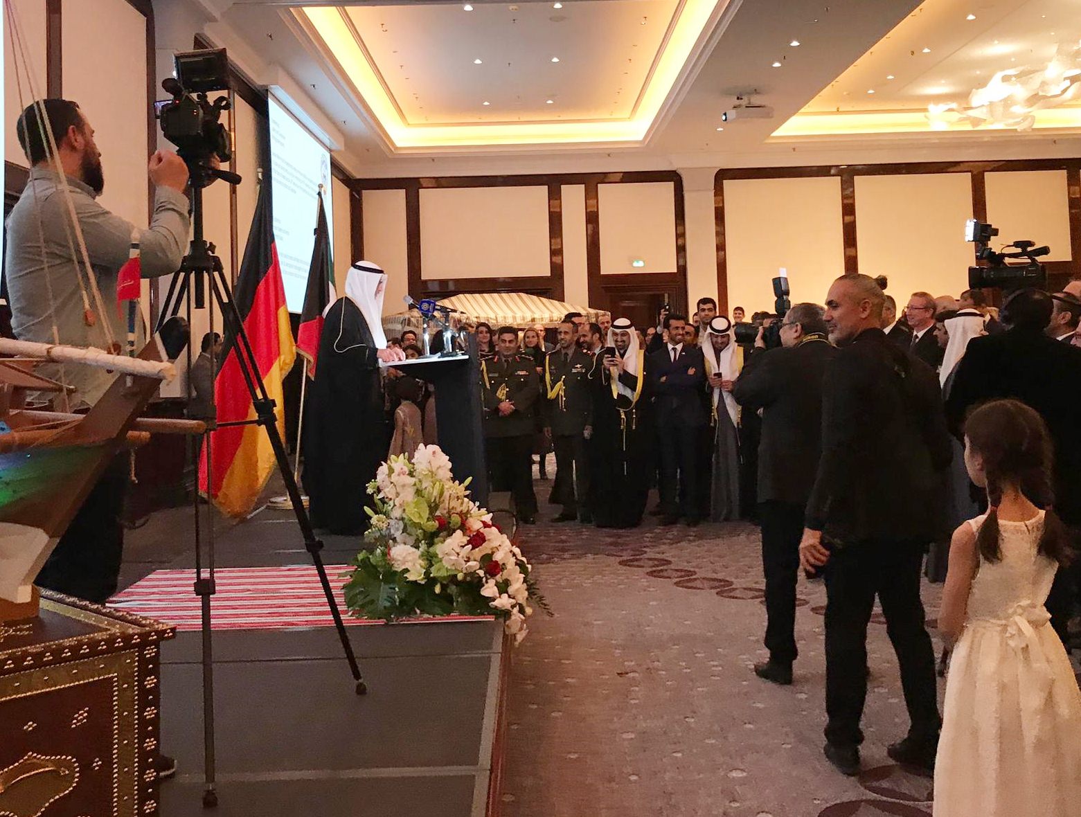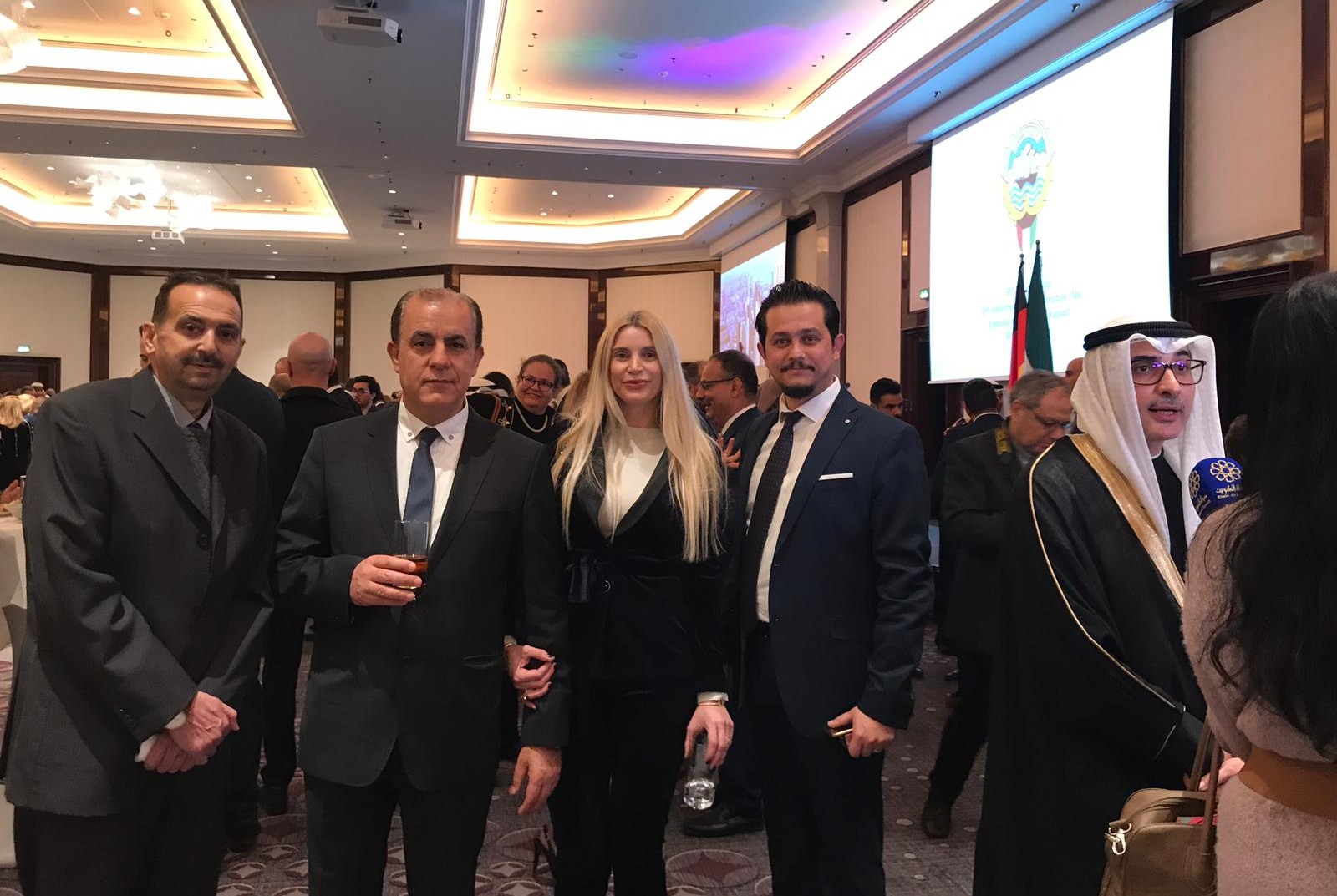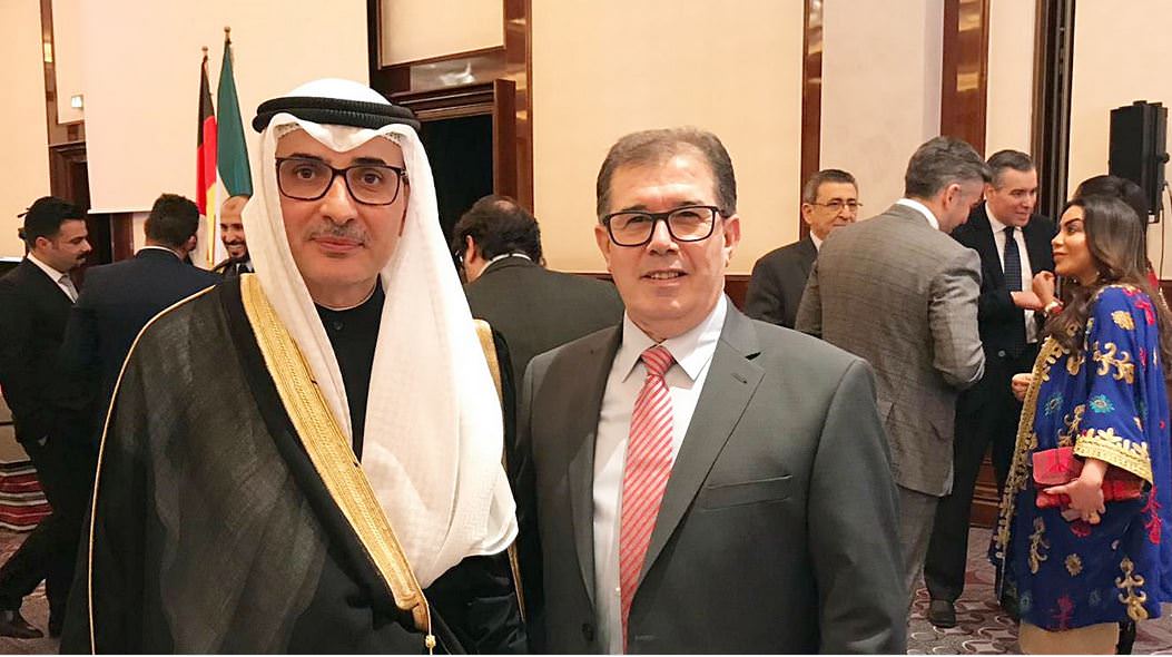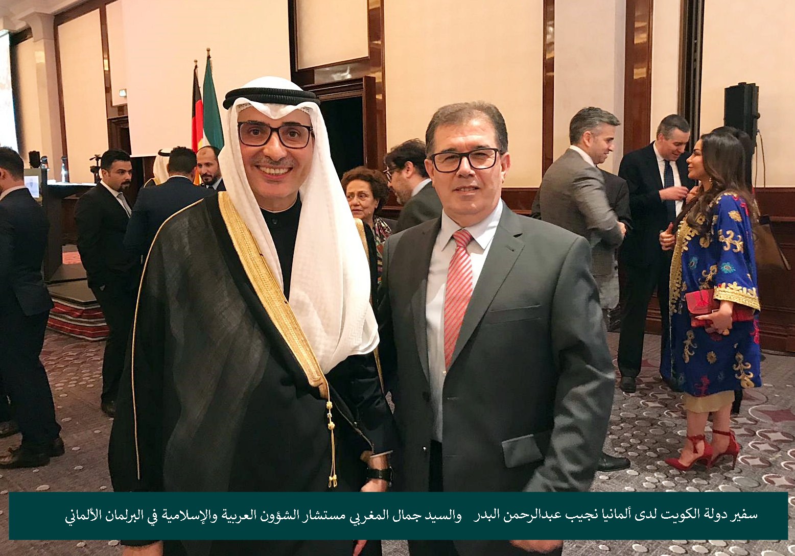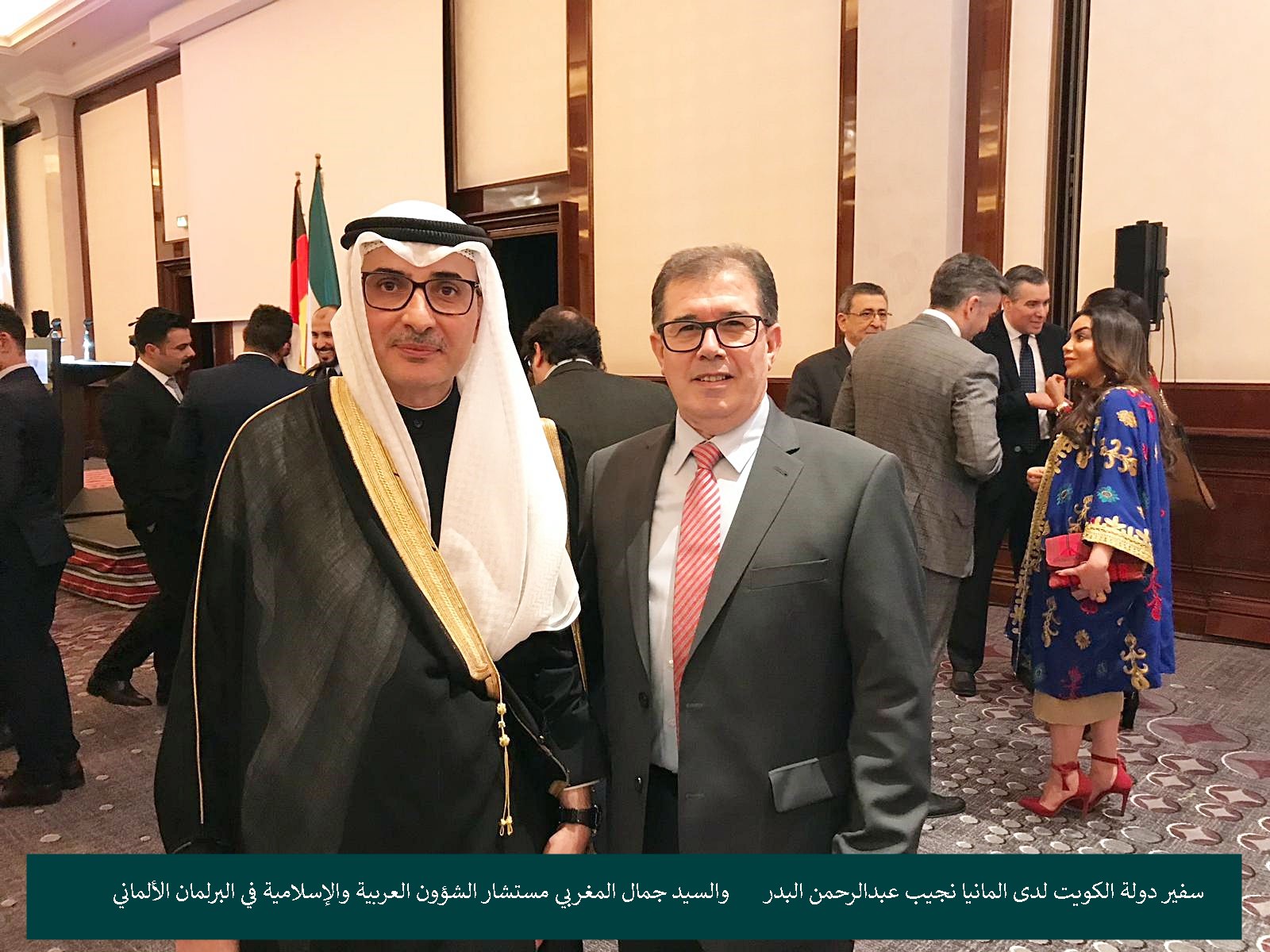 أقامت سفارة دولة الكويت لدى ألمانيا حفل إستقبال في فندق “ريتس كارلتون” في العاصمة الالمانية برلين بمناسبة العيد الوطني ال 58 والذكرى ال28 ليوم التحرير وسط مشاركة حاشدة لشخصيات سياسية وبرلمانية وإقتصادية وديبلوماسية . كما حضر الحفل مجموعة من السفراء العرب الذين كان على رأسهم عميد السفراء العرب في ألمانيا وسفير جمهورية لبنان الدكتور مصطفى أديب و السيد جمال المغربي مستشار الشؤون العربية والإسلامية في البرلمان الألماني ، القنصل لسفارة دولة فلسطين الاخ عبد الهادي ابو شرخ ، نائب رئيس جمعية الصداقة العربية الألمانية السيد حسام معروف ورجل الاعمال الفلسطيني حاتم الصفدي والدكتور هشام الدهشان والدكتور باسم ابو لبدة الى جانب الكثير من الشخصيات العربية .