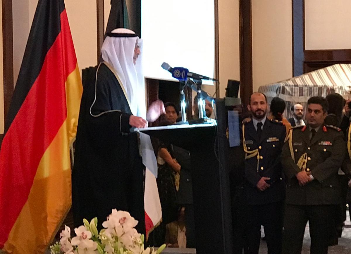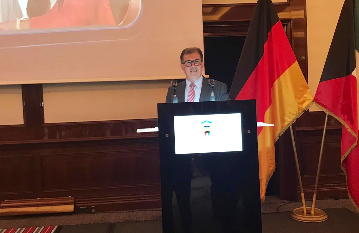 رحب السفير نجيب البدر في كلمة القاها بضيوفه شاكرا لهم تلبية دعوته، وأشار الى العلاقات الوطيدة الإقتصادية التي تربط دولة الكويت بجمهورية المانيا الإتحادية .