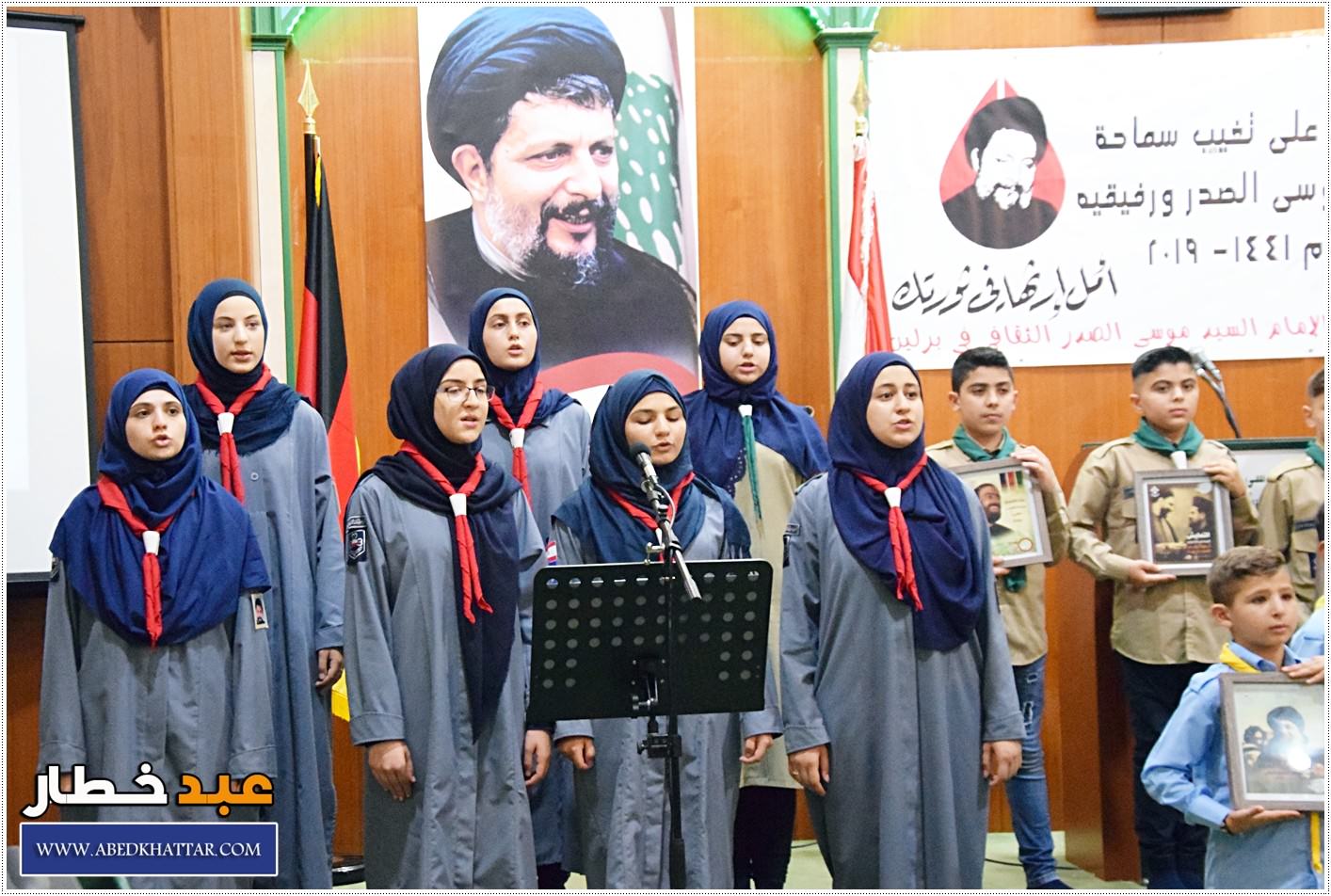 اقامت حركة امل منطقة برلين ذكرى اختفاء الامام السيد موسى الصدر والشيخ محمد يعقوب والاستاذ عباس بدر الدين . في مركز الامام موسى الصدر الثقافي ، افتتح المهرجان بتلاوة من الذكر الحكيم بصوت الاخ محمد بشير ، وقامت فرقة طلاب مدرسة الامل والرسالة بالقاء النشيدين اللبناني والالماني ونشيد حركة امل ، كلمة حركة أمل القاها الاخ الحاج علي خريس ، بحضور الاخوة من الجالية اللبنانية والجمعيات والاحزاب وعلمائنا الافاضل وسعادة السفير السوري والعراقي والقنصل حمزة جمول ، وكلمة للسفير اللبناني في المانيا الدكتور مصطفى اديب وقام بالتعريف الاخ الحاج ابو علي حسن فركوح وقصيدة للشاعر طانيوس كنعان ، وكان عرض لفرقة كورال الصدر لكشافة الرسالة الاسلامية برلين .
