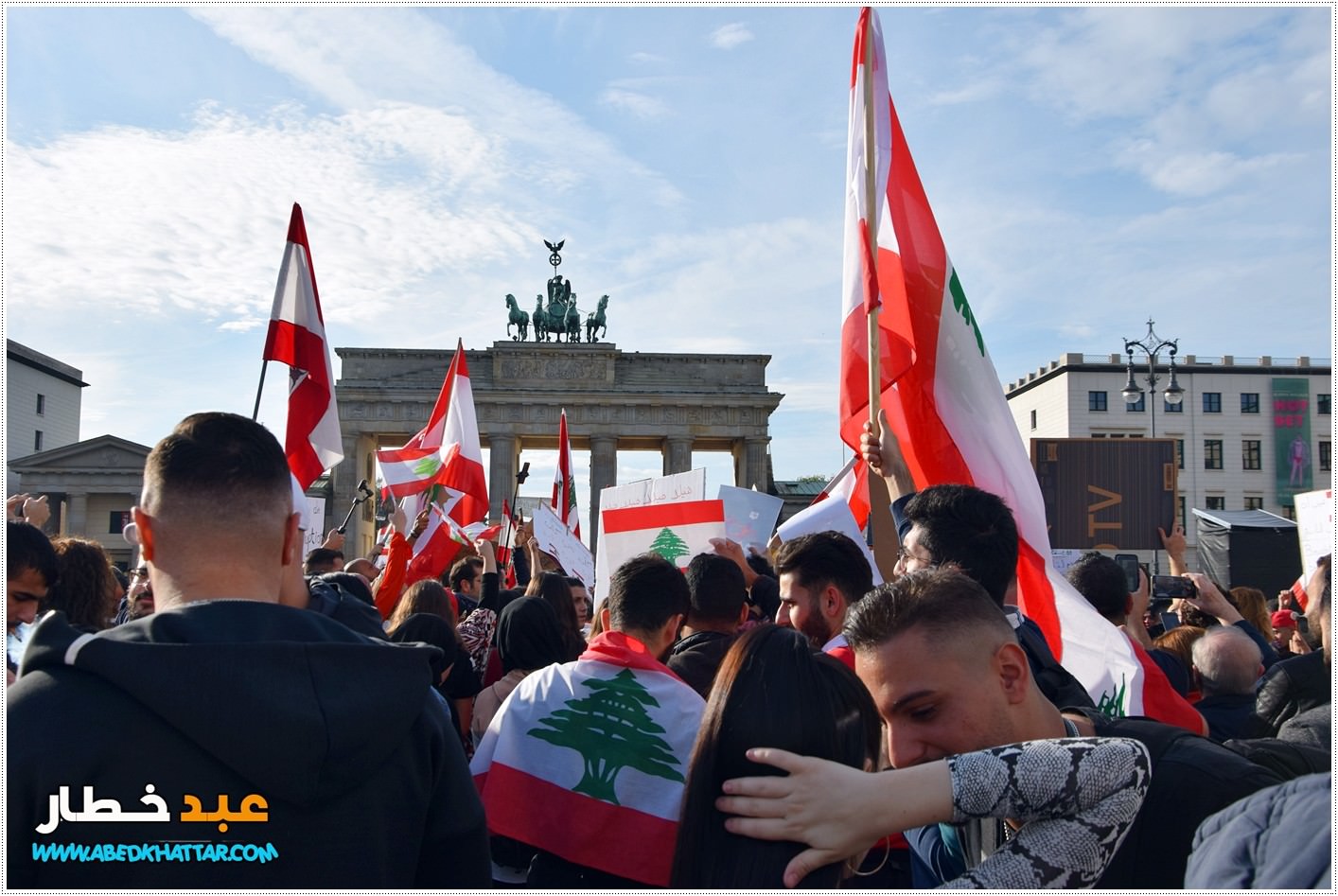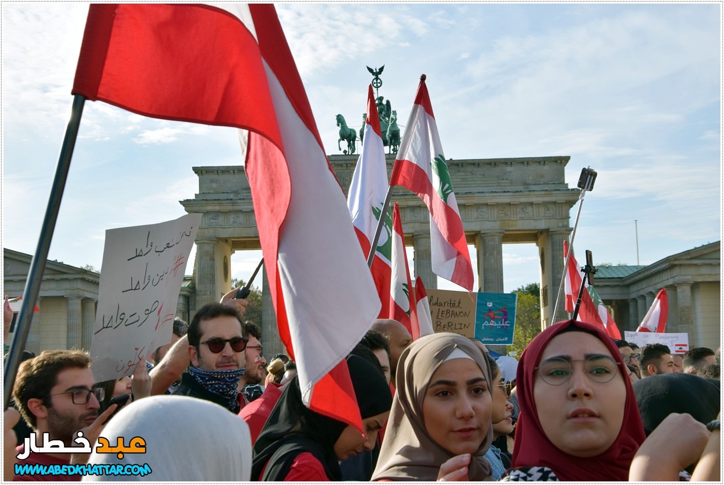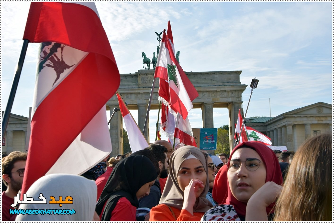وقفة احتجاجية لبنانية في العاصمة برلين تؤيد آلاف اللبنانيين المحتشدين في العاصمة بيروت