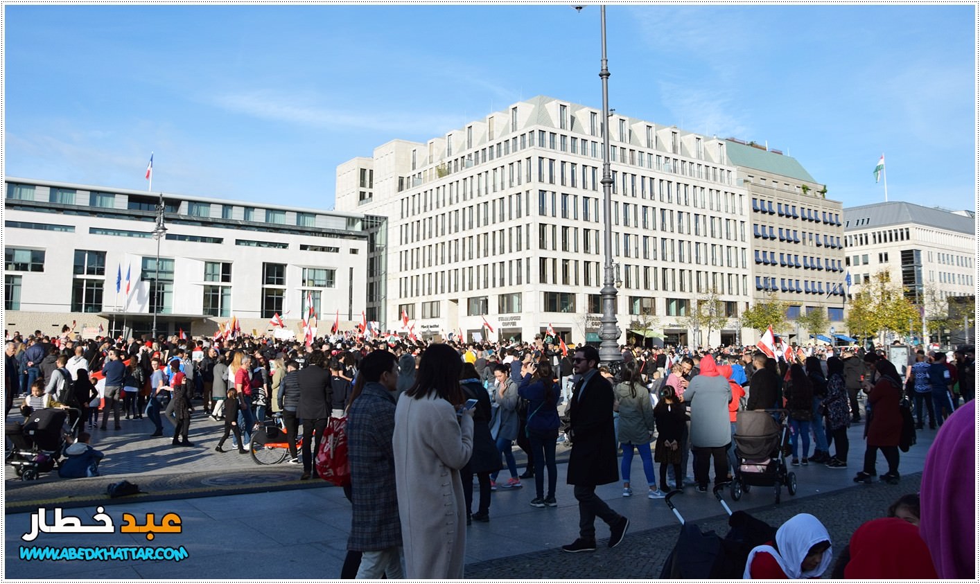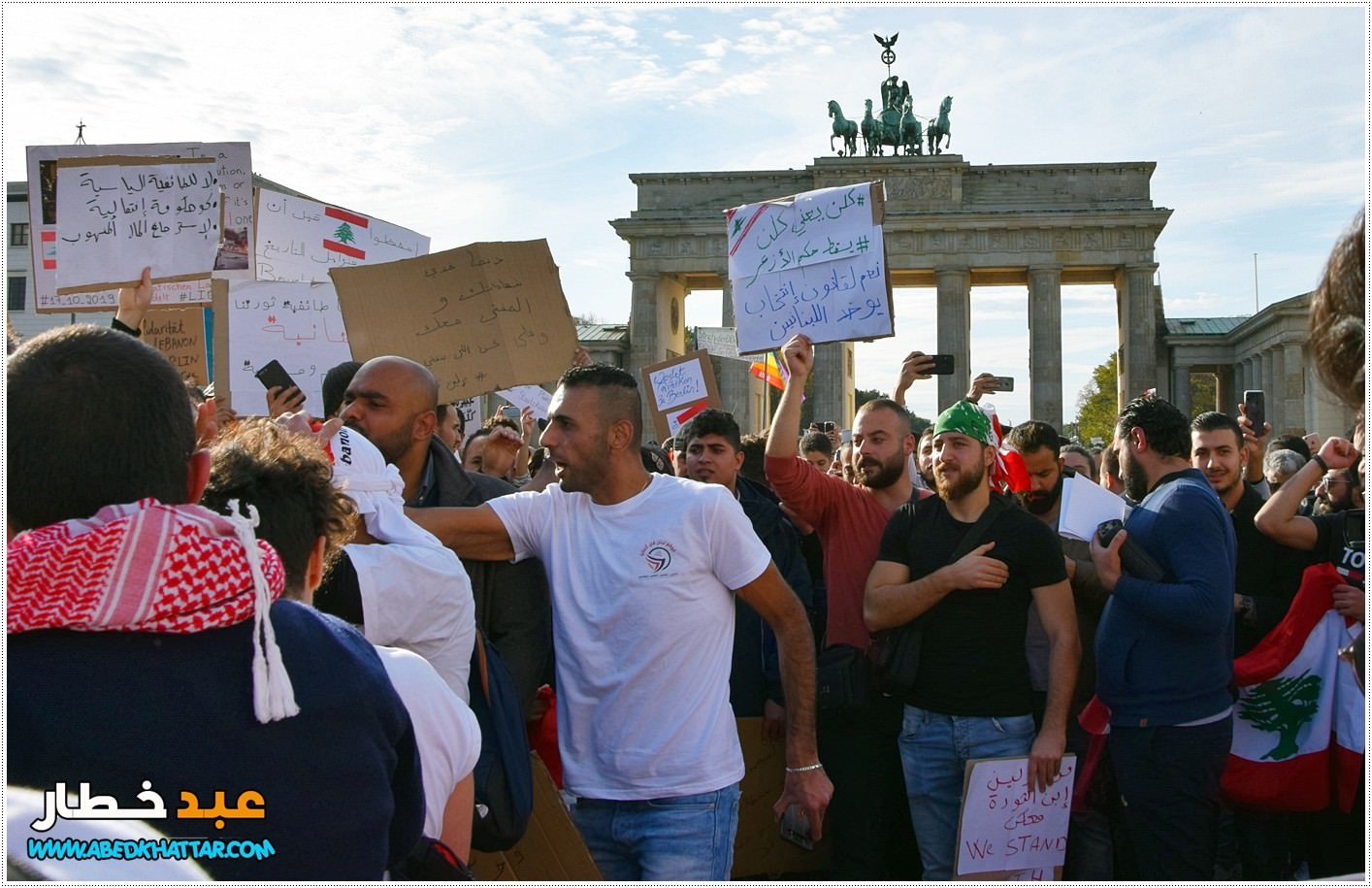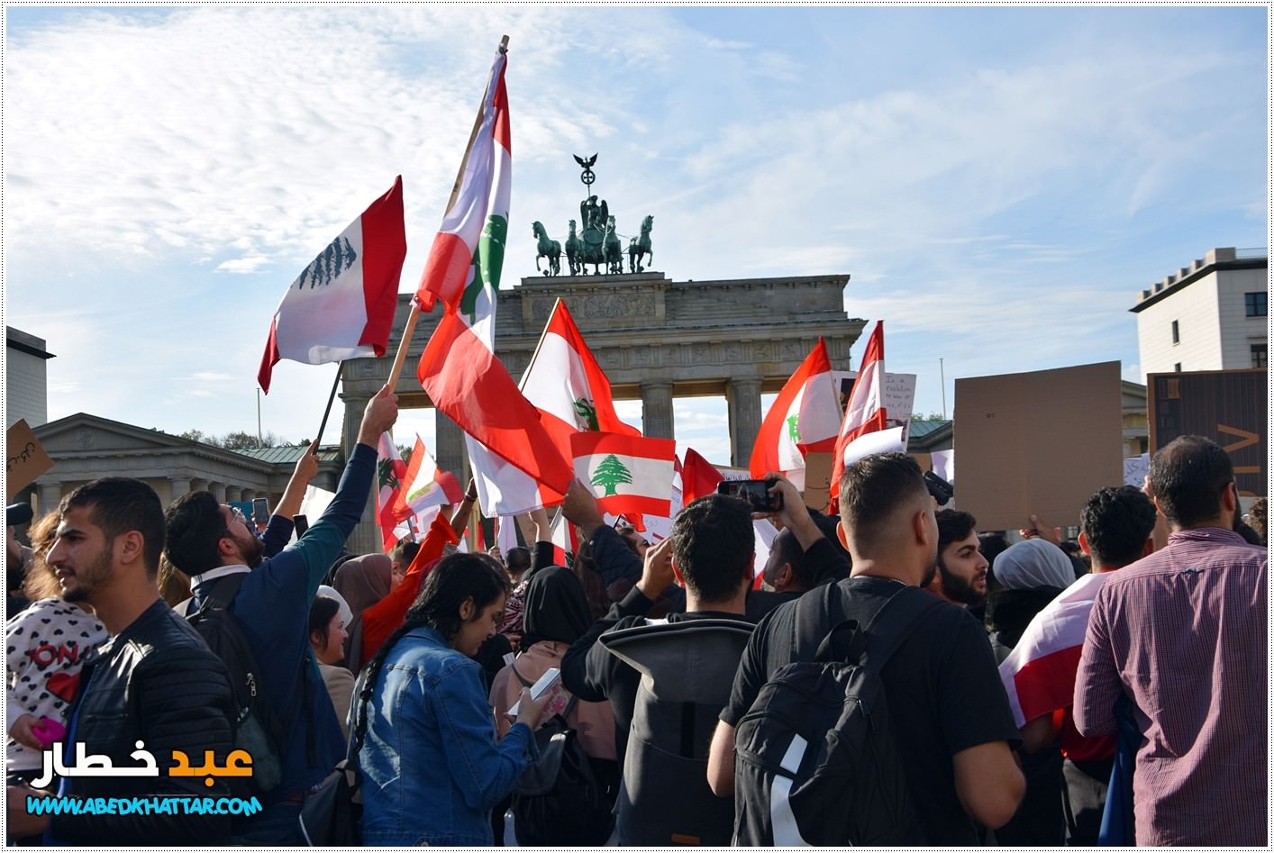 وقفة احتجاجية لبنانية في العاصمة برلين تؤيد آلاف اللبنانيين المحتشدين في العاصمة بيروت