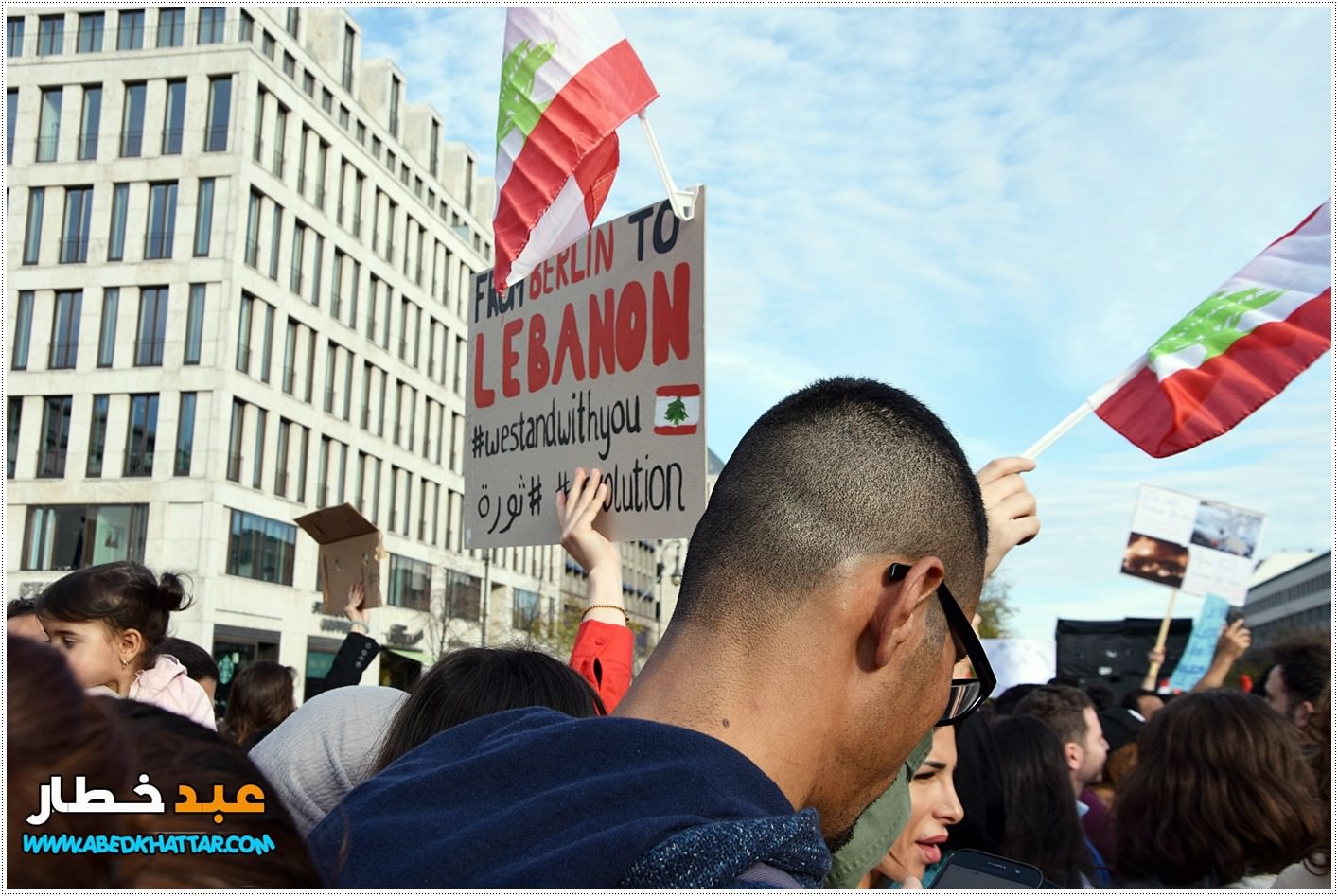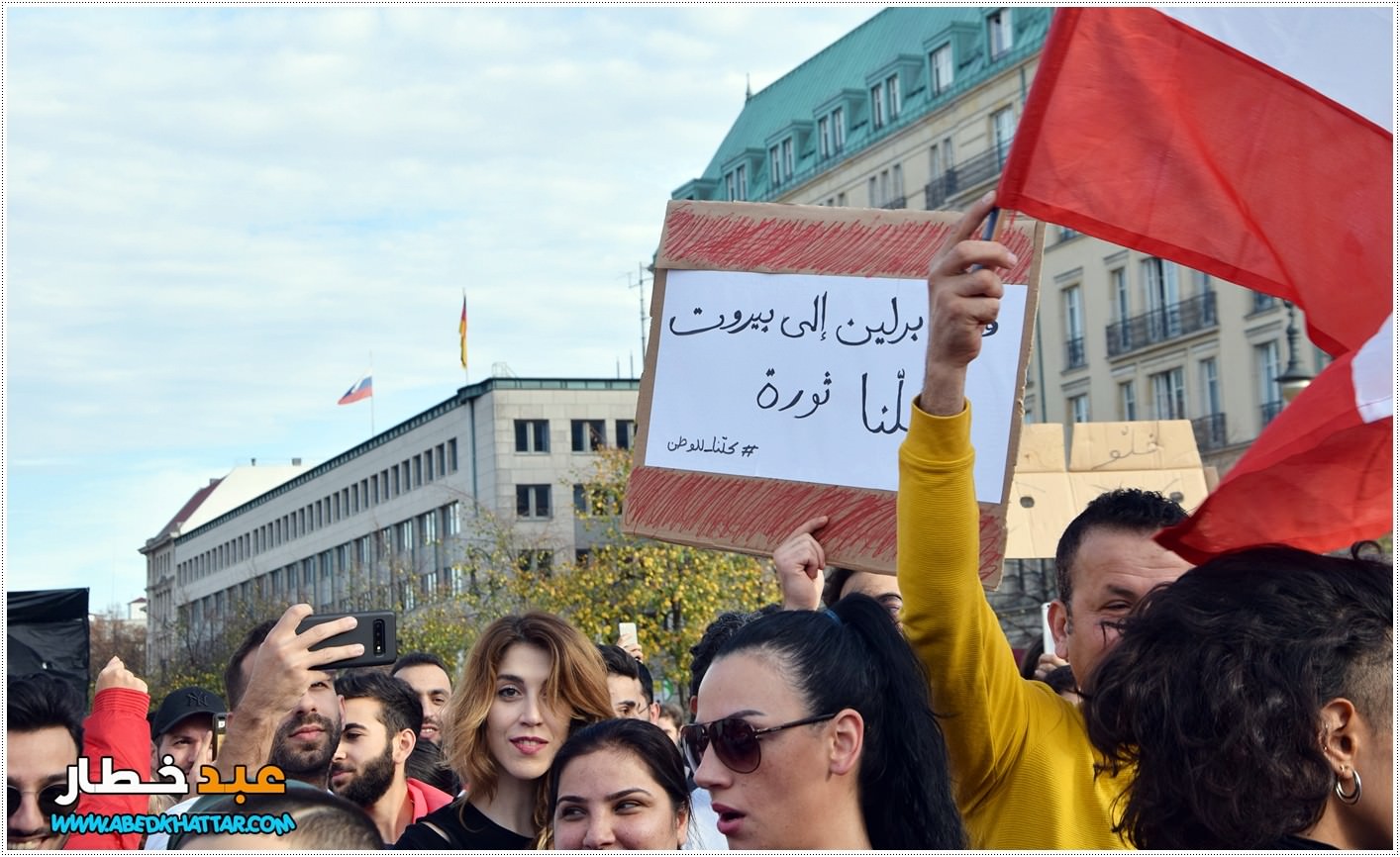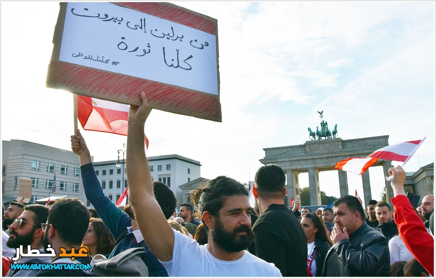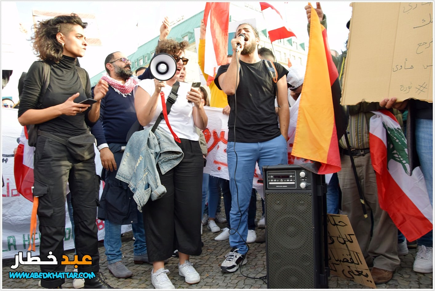 وقفة احتجاجية لبنانية في العاصمة برلين تؤيد آلاف اللبنانيين المحتشدين في العاصمة بيروت وعدد من الميادين في لبنان
