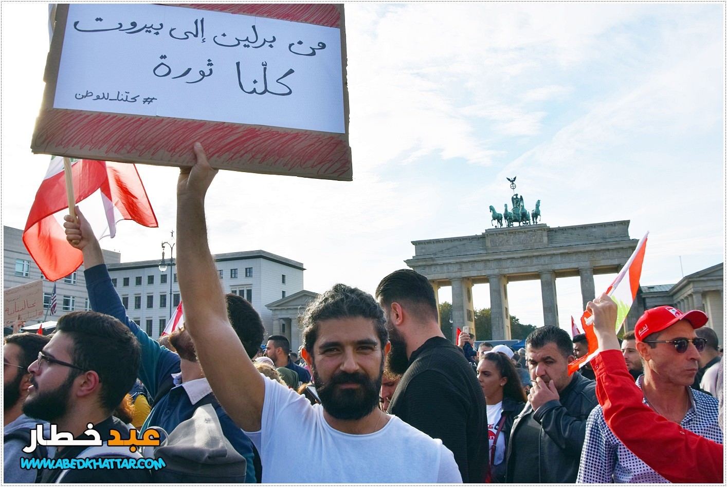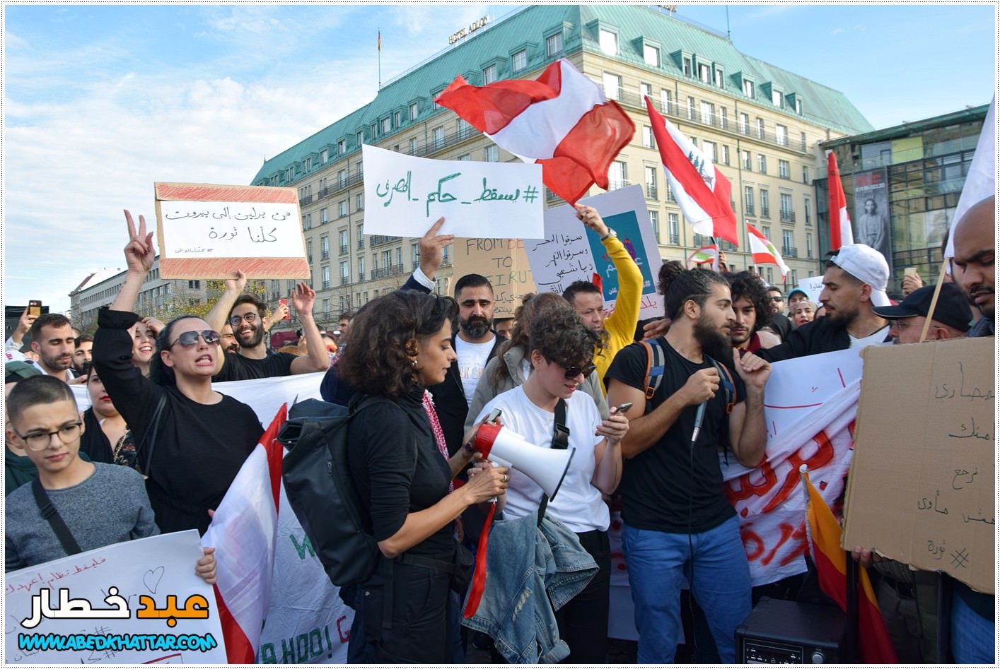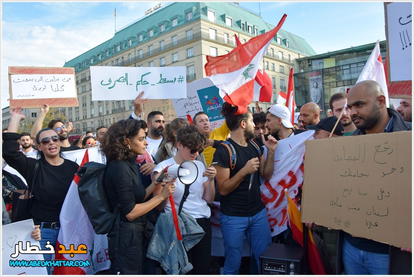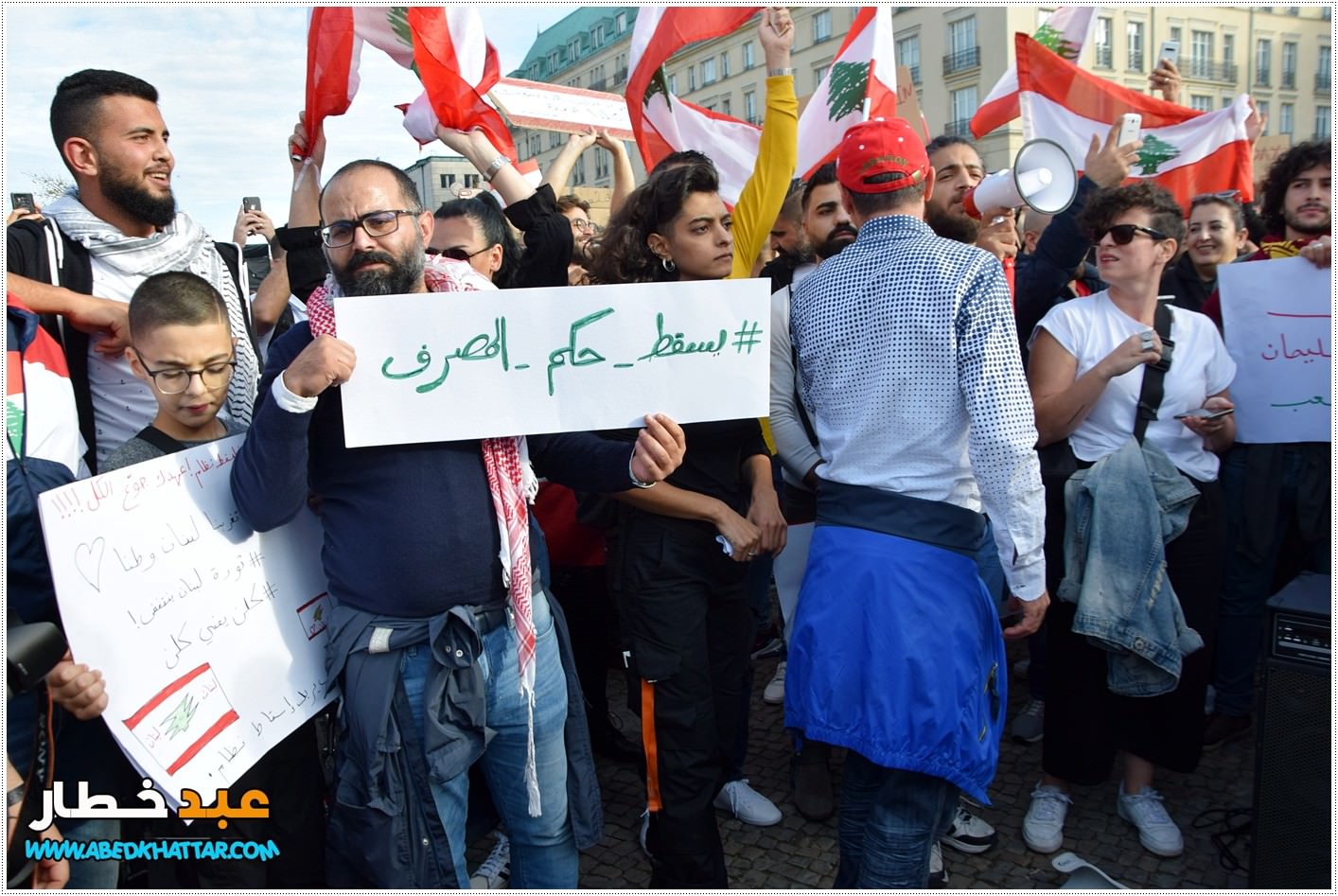 وقفة احتجاجية لبنانية في العاصمة برلين تؤيد آلاف اللبنانيين المحتشدين في العاصمة بيروت وعدد من الميادين في لبنان