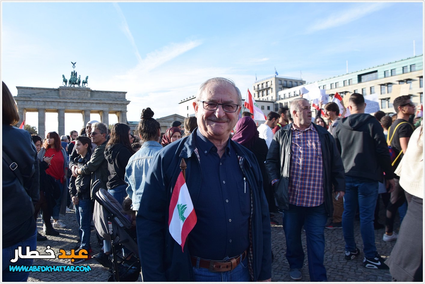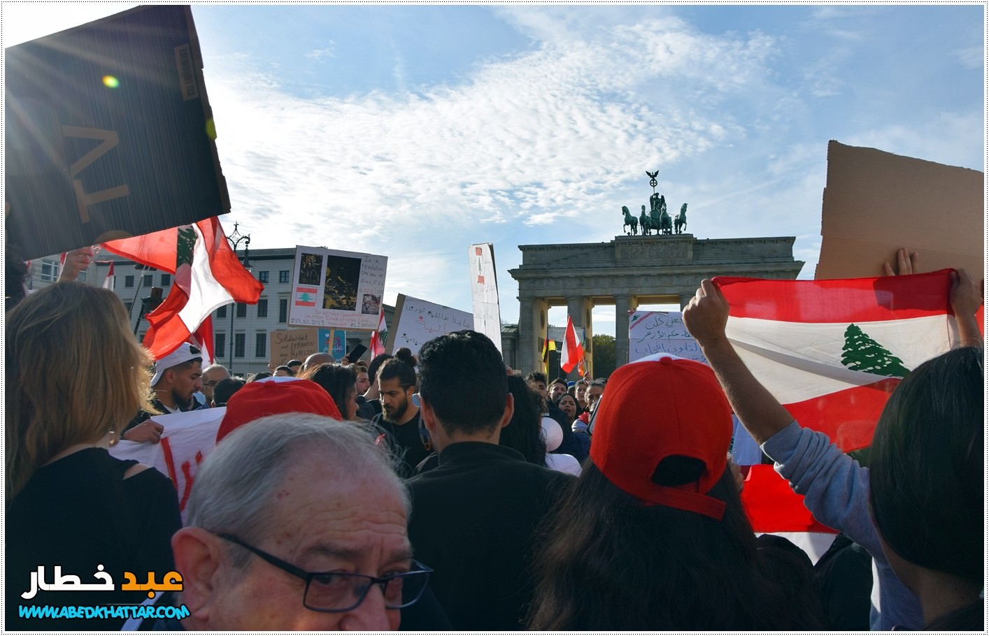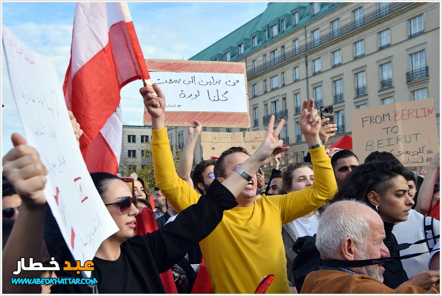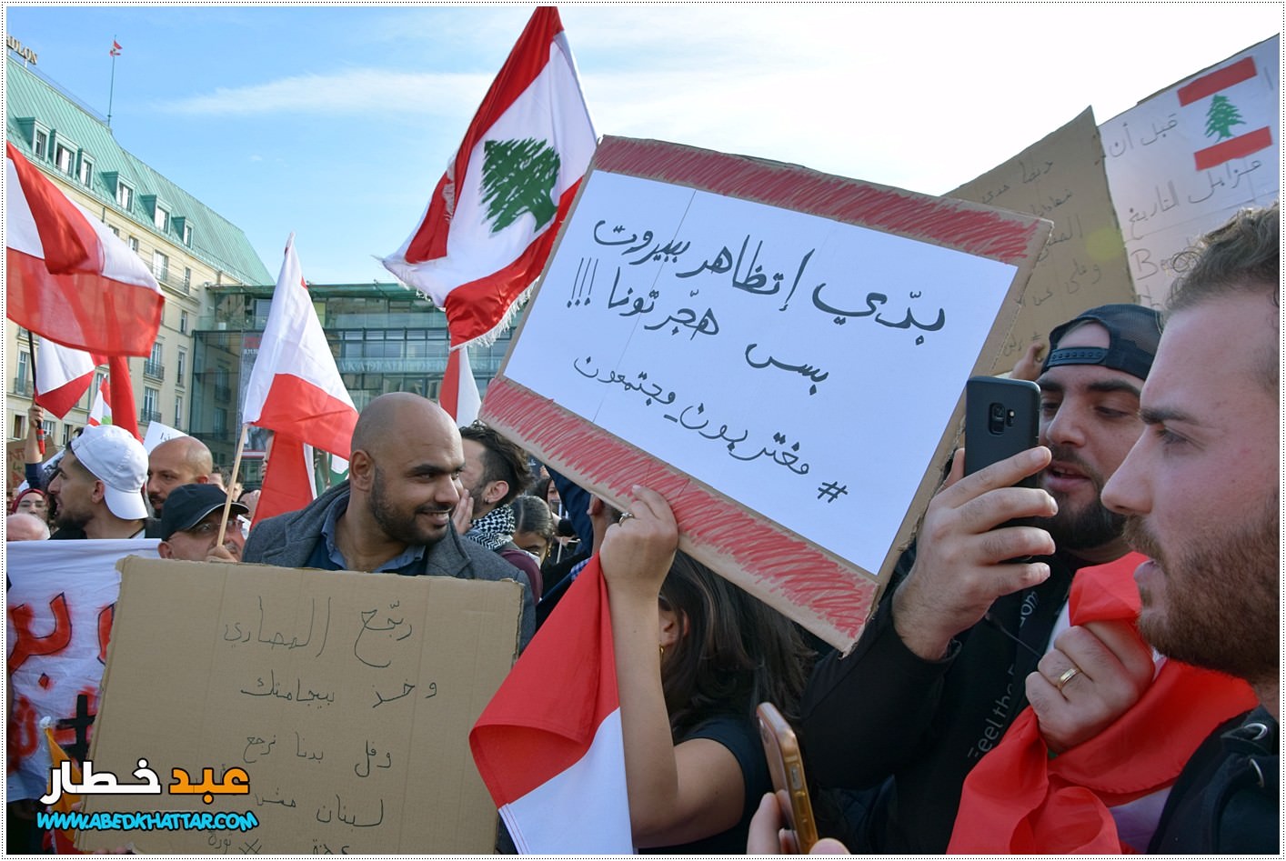 وقفة احتجاجية لبنانية في العاصمة برلين تؤيد آلاف اللبنانيين المحتشدين في العاصمة بيروت وعدد من الميادين في لبنان