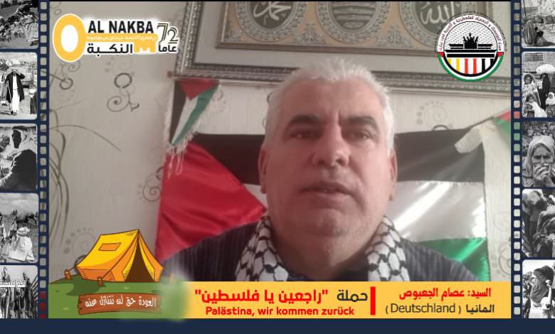 مساهمة الأخ السيد عصام الجعبوص من مدينة برلين – ألمانيا في حملة هيئة المؤسسات والجمعيات الفلسطينية والعربية في برلين لإحياء ذكرى النكبة 72