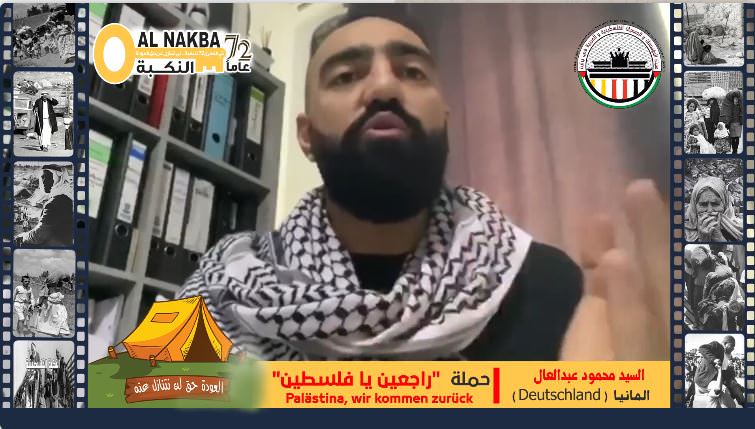 مساهمة الأخ السيد محمود عبدالعال من مدينة برلين / ألمانيا في حملة هيئة المؤسسات والجمعيات الفلسطينية والعربية في برلين (راجعين يا فلسطين) لإحياء ذكرى النكبة 72.