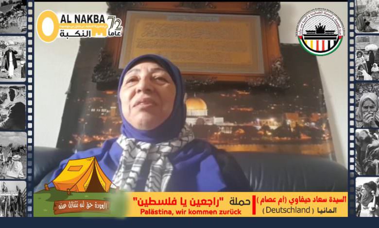 مساهمة الأخت السيدة سعاد حيفاوي (أم عصام) من برلين / ألمانيا في حملة هيئة المؤسسات والجمعيات الفلسطينية والعربية في برلين (راجعين يا فلسطين) لإحياء ذكرى النكبة 72.
