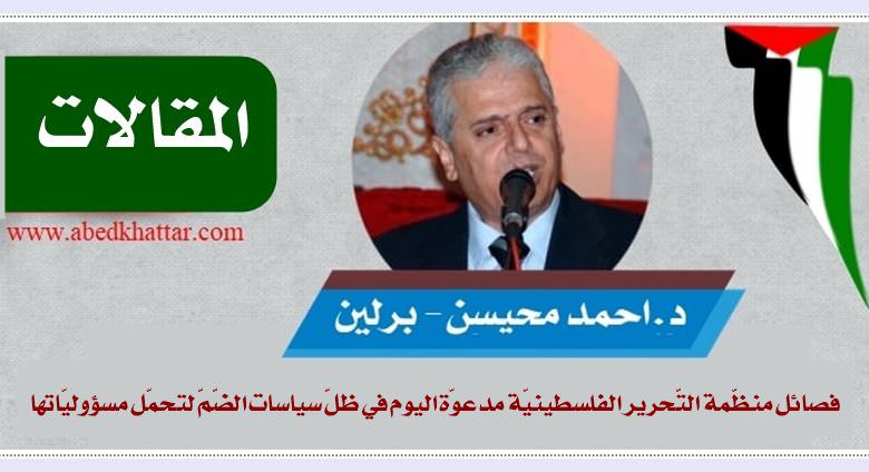 إنّ فصائل منظّمة التّحرير الفلسطينيّة .. مُطالَبة اليوم بفرض وجودها بالفعل والإجراء وبأخذ زمام المبادرة .. في الدّعوة إلى اجتماع فوري شامل .. يضُمّ الإطار القيادي لمنظّمة التّحرير الفلسطينيّة وكلّ أطياف الشّعب الفلسطيني .. لمواجهة صفقة القرن وسياسات خطط الضّمّ المعلنة لدولة الإحتلال .. والتّحرّر من دكتاتوريّة ورحمة انتظار الدّعوة من محمود عبّاس ..