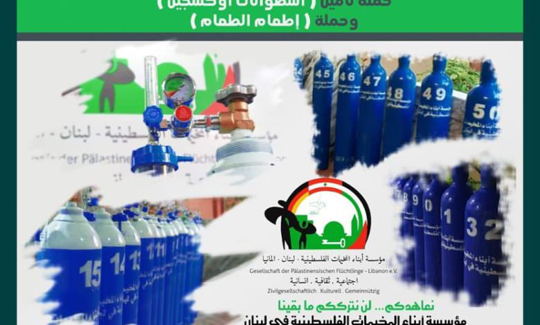 تعلن مؤسسة أبناء المخيمات الفلسطينية في لبنان ومقرها الرئيس برلين عن إنهاء حملة التبرعات التي أطلقتها قبل أسبوعين تحت عنوان: “تأمين أسطوانات أوكسجين وإطعام الطعام” للوقوف إلى جانب المصابين والمحجورين من جراء جائحة كورونا في كافة المخيمات والتجمعات الفلسطينية في لبنان بعد أن استوفت الغرض منها.