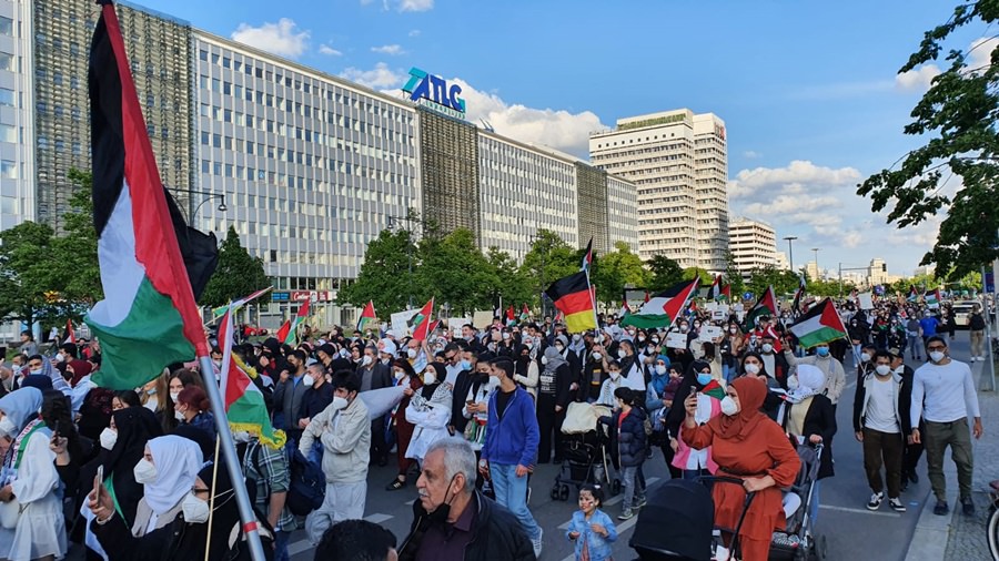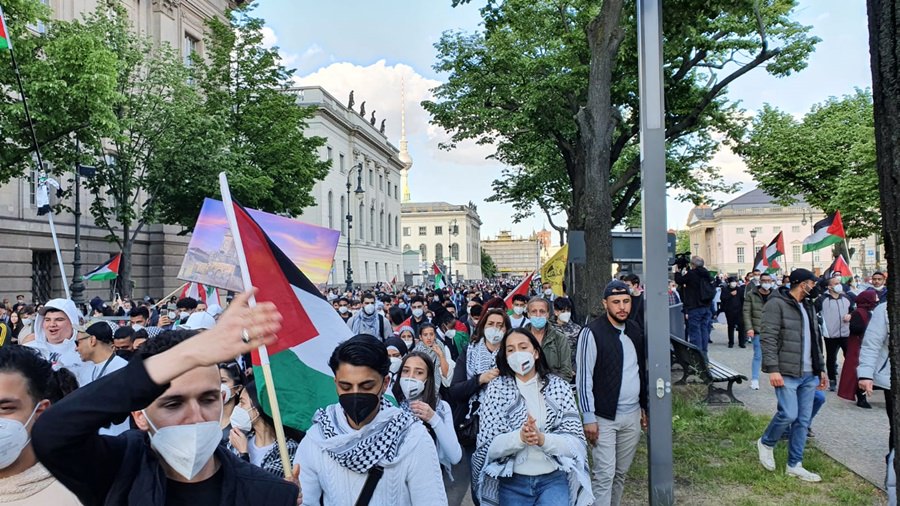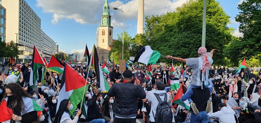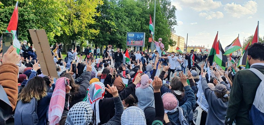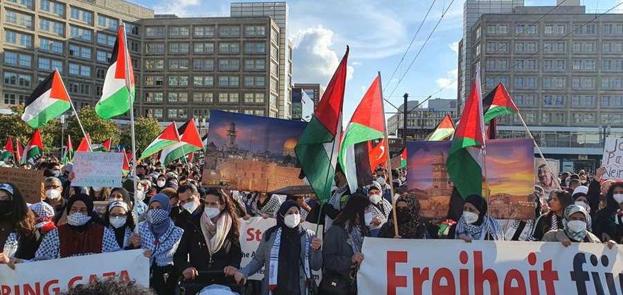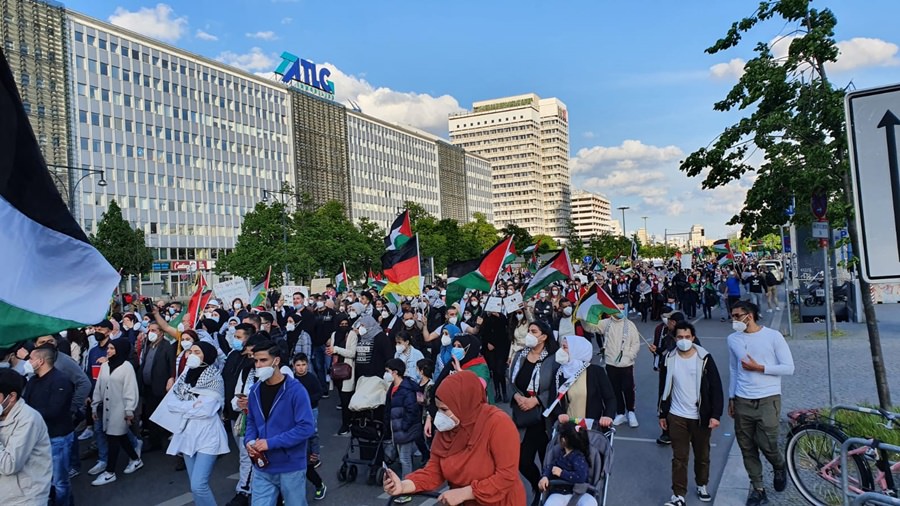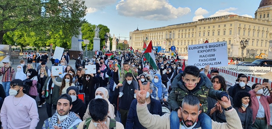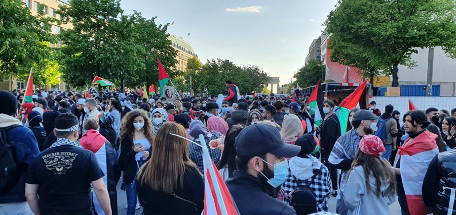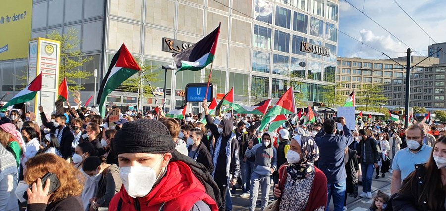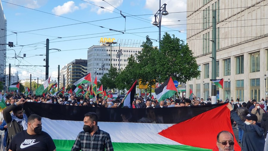 لقد خرج الآلاف من أبناء الشعب الفلسطيني والعربي ومناصري القضية الفلسطينية في برلين .. في مظاهرة جماهيرية حاشدة مندّدين بالعدوان الهمجي على قطاع غزّة العزّة الأبيّة الصّامدة والضفة المحتلة وفي العمق الفلسطيني .. حيث استمرّت الإحتجاجات الشّعبيّة في عاصمة الشّتات الفلسطيني برلين ولم تتوقف .. حيث كانت للجماهير وقفات إحتجاية متكررة منذ بدايات الإعتداء على اهلنا في القدس وفي حي الشيخ جراح .. حيث كانت وقفات احتجاجية أمام بوّابة برلين والسّفارة الأمريكيّة والفرنسيّة والبرلمان الألماني ومقرّ المستشاريّة الألمانيّة .. شجبا للعدوان الإسرائيلي ونُصرة للأقصى وللقدس ولأهلنا في فلسطين .. وكانت مظاهرات جماهيريّة جابت شوارع العاصمة برلين .. تشجب همجيّة الإحتلال وعدوانه .. مندّدة بالصّمت الدّولي على ما يجري من اعتداءات على أهلنا وأحبّتنا في قطاع غزة وعلى المسجد الأقصى والقدس.