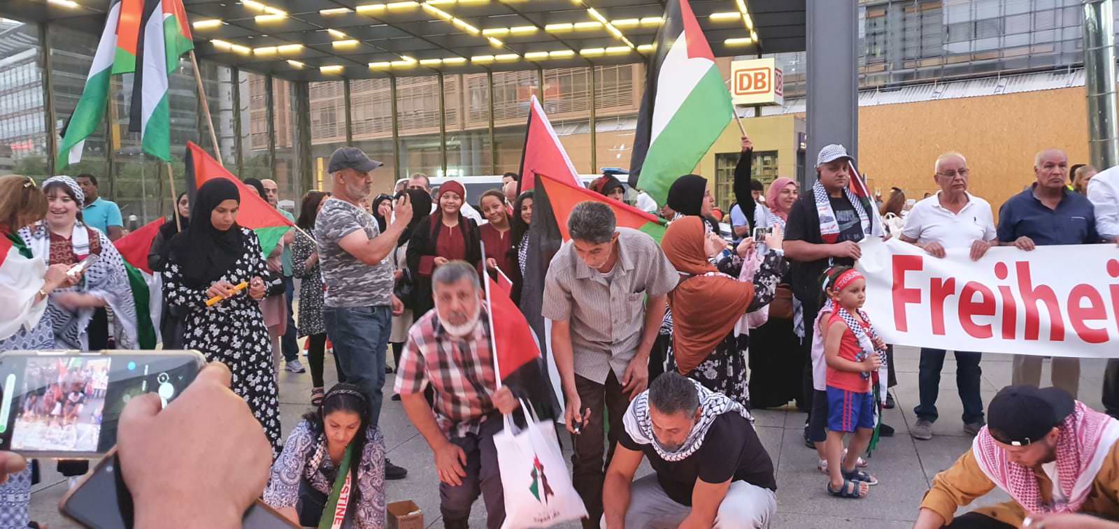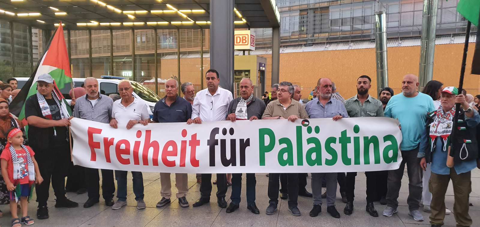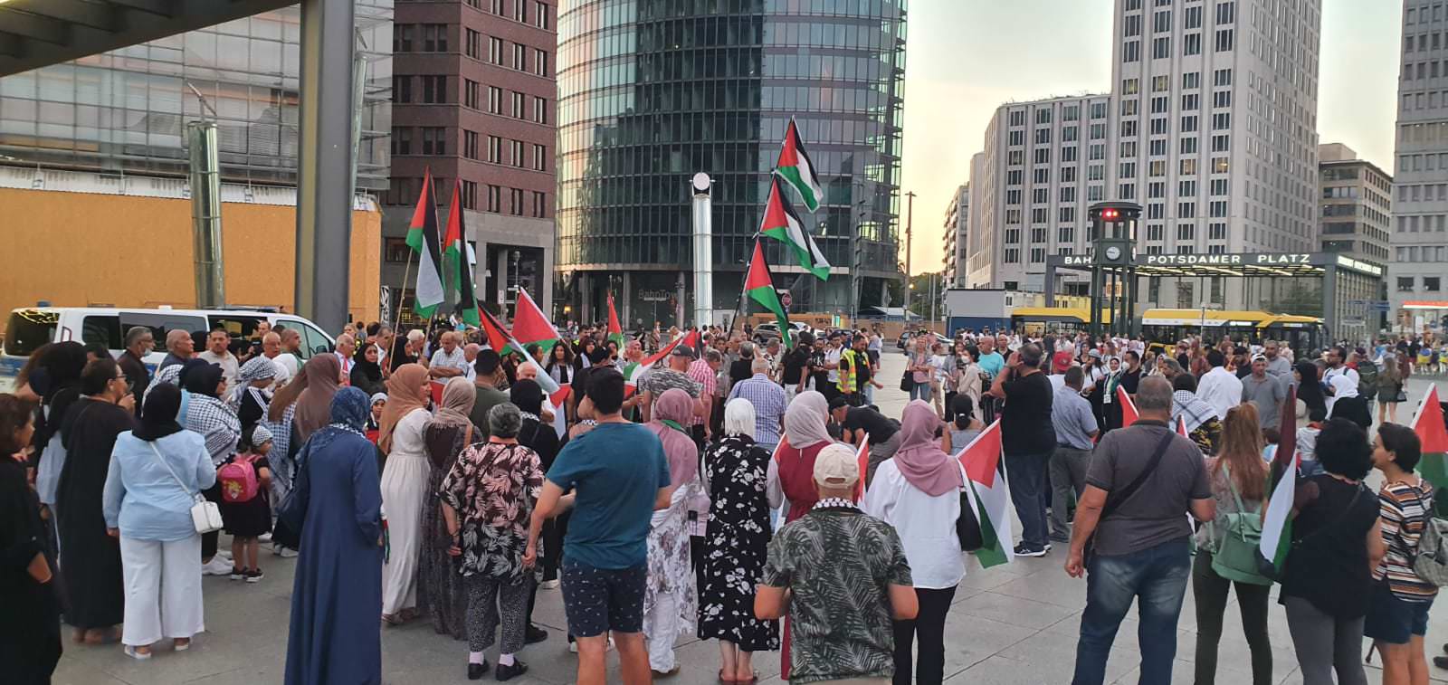 وأعرب المُتظاهرون في برلين عن سخطهم من مُمارسات الإحتلال الذّي يستكمل حرب الإبادة لأهلنا في غزّة والسيطرة على مزيد من الأراضي في الضفة .. إستمرارا للحرب التدميريّة الّتي يشنّها جيش الإحتلال الإسرائيلي الإرهابي .. بسلاح الحصار والتجويع .. ضدّ أبناء الشعب الفلسطيني .. بإستخدام كلّ الوسائل وكلّ أنواع أسلحة البطش الحربيّة التّدميريّة المتطوّرة .. بقصف قطاع غزّة بالصّواريخ المدمّرة … في حرب مفتوحة دون هوادة … مما تسبّب في سقوط الشّهداء والجرحى … من بينهم العديد من الأطفال والنّساء.