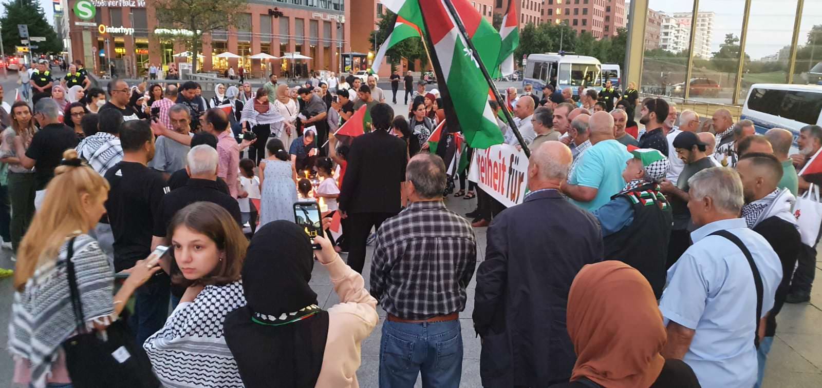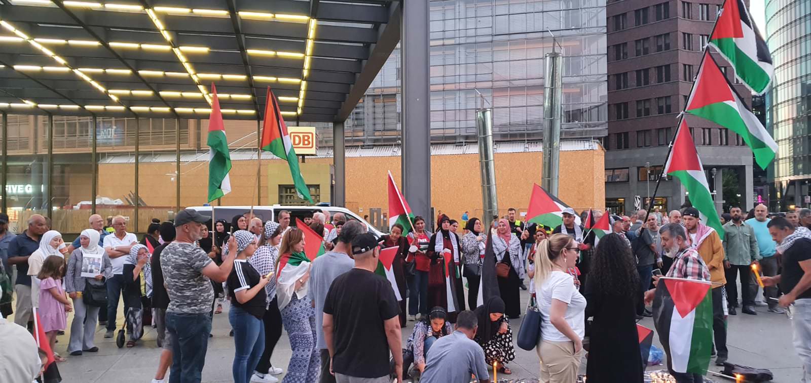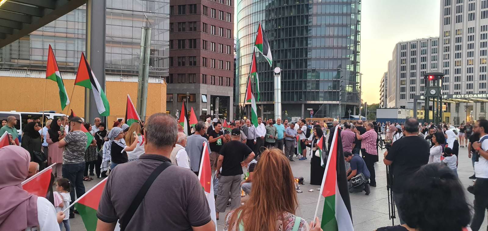 وطالب المتظاهرون في برلين، الذين رفعوا الأعلام الفلسطينية وحملوا اليافطات التي تدين العدوان وتظهر صور الدمار وكذلك صور ضحايا العدوان كما أضاؤوا الشّموع تخليدا لأرواح الشهداء، لنقل صور معاناة شعبنا جرآء العدوان من المحتل .. وطالبوا الحكومة الألمانية والإتحاد الأوروبي بعدم السكوت على جرائم الإحتلال الذي يعاني منها الفلسطينيون .. وبمنع دولة الإحتلال من السماح لقطعان المستوطنين باستمرارهم في إجتياح المسجد الأقصى بحماية جيش الإحتلال وأجهزته العدوانية وكذلك عدم السماح للإحتلال بإجراء أي تغيير في وضع الحرم الشريف والمسجد الأقصى المبارك …