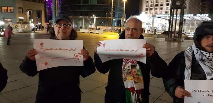 حداداً على أرواح شهداء الشعب الفلسطيني وشهداء مجزرة جنين وتضامناً مع عائلات الشهداء أقامت لجنة العمل الوطني في برلين بالتشارك مع هيئة المؤسسات والجمعيات الفلسطينية والعربية وقفة إضاءة شموع صامتة في ساحة البوتسدامر وسط العاصمة الألمانية برلين.