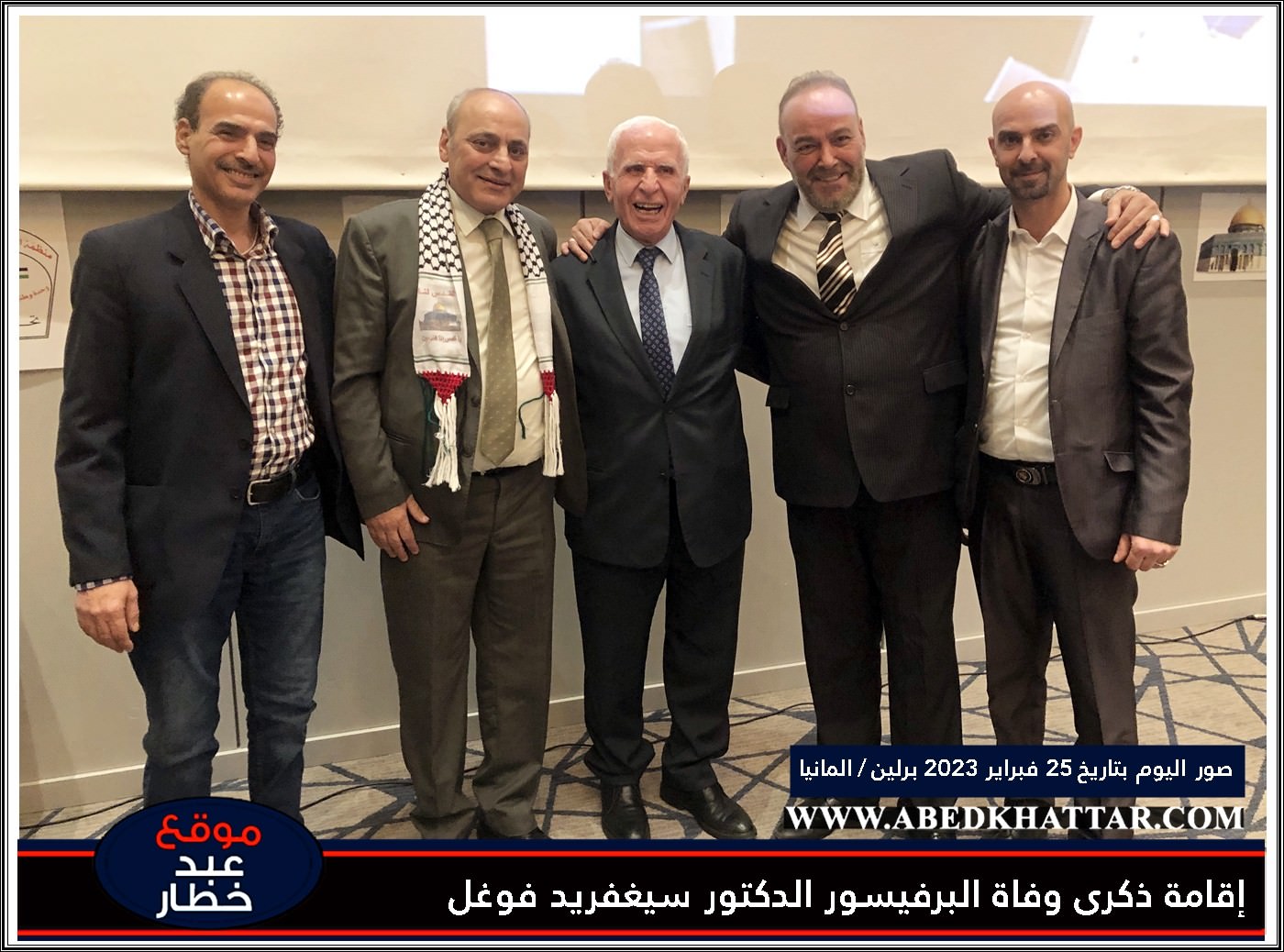 تكريم البرفسور الراحل زيغفريد فوغل، بحضور زوجته وأطباء عرب وألمان، وبمشاركة عضو اللجنة المركزية لحركة “فتح” السيد عزام الأحمد، وعضو اللجنة التنفيذية لمنظمة التحرير الفلسطينية واصل ابو يوسف ، وذلك في حفل بالجمعية الطبية الألمانية العربية، تقديرا لدعمه للشعب الفلسطيني خلال مسيرة حياته المهنية. بحضور زوجته وأطباء عرب وألمان، وذلك في حفل في فندق الشيراتون