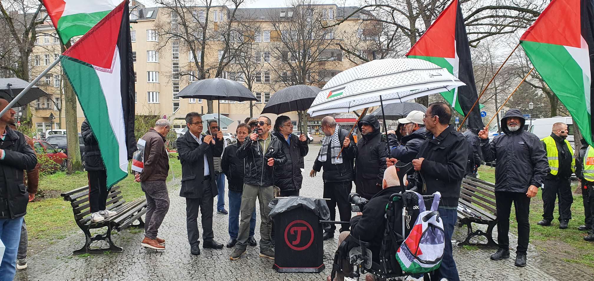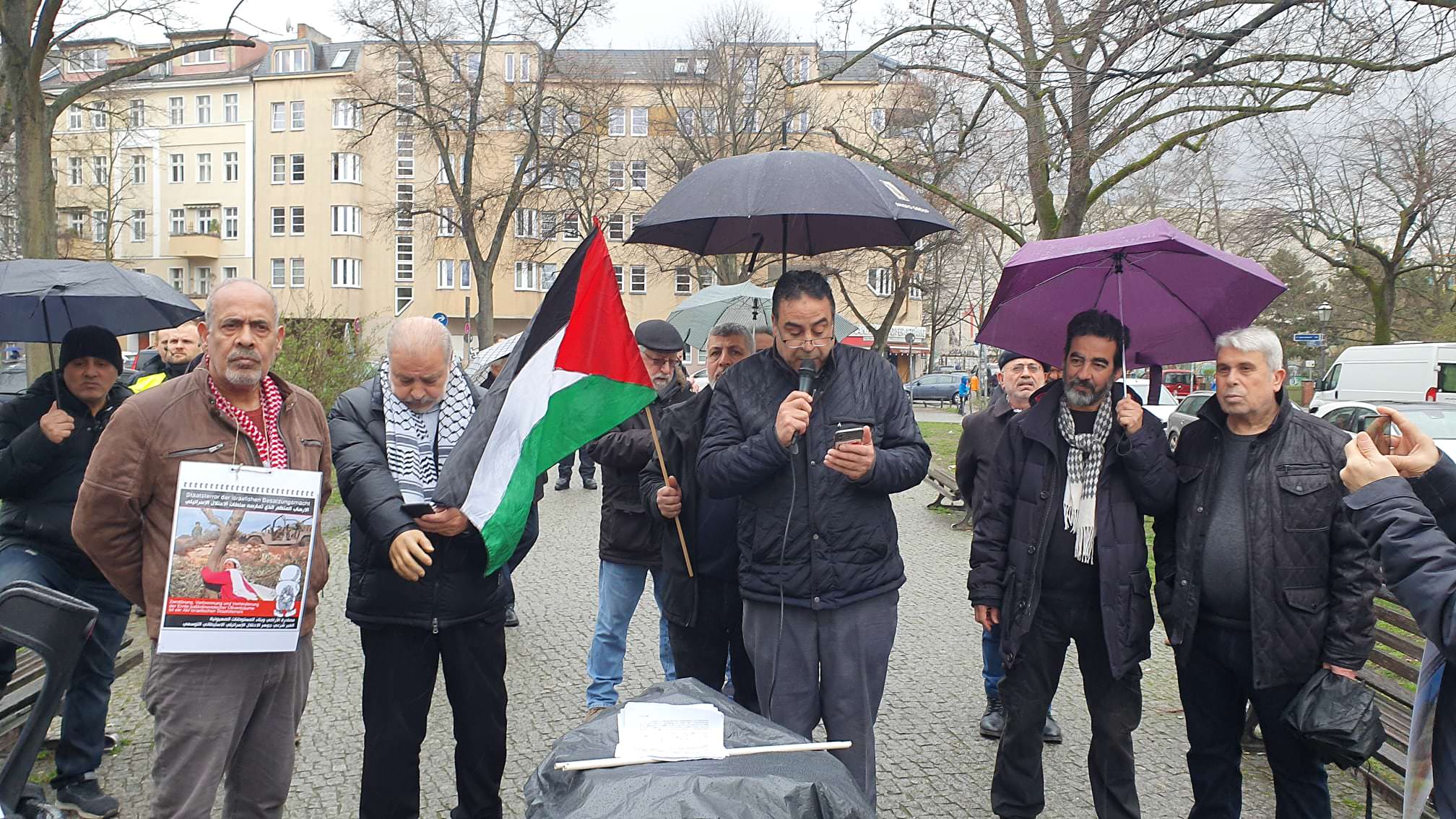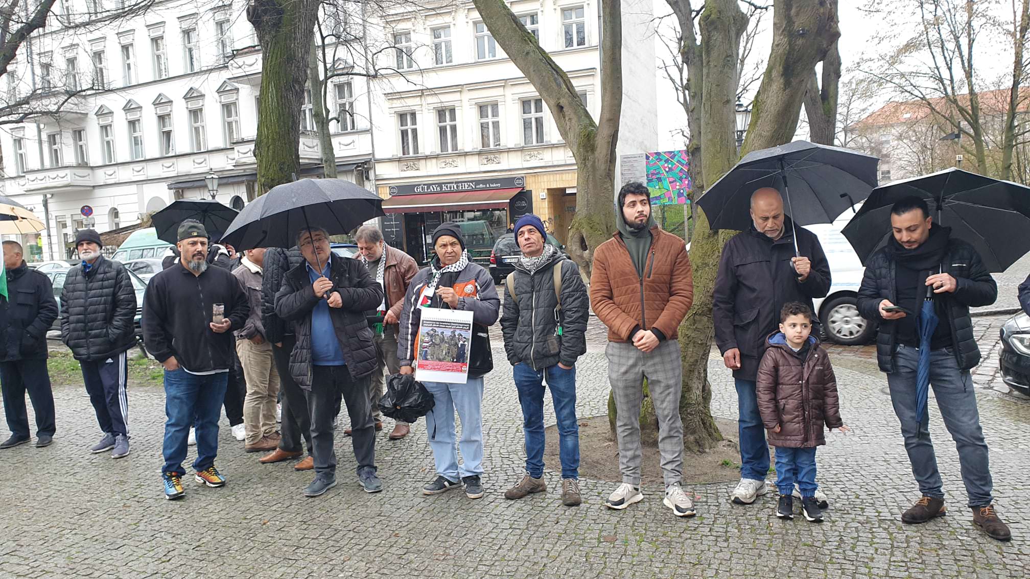 وجّه المتظاهرون تحيّة من برلين لأهل الأرض .. أبناء الشعب العربي الفلسطيني في الداخل الفلسـطيني المحتل عام 48 .. وحيثما تواجد .. يشدّون على أياديهم … ويحيون صمودهم … ومعهم … حتى العودة والتحرير وتقرير المصير .. ويرددون كما قال شاعرنا الكبير محمود درويش … وأسد فلسطين الشيخ رائد صلاح إنا هنا في فلسطيننا باقون .. ما بقي الزعتر والزيتون … راسخون هنا راسخون … حجر وشجر وبشر… ونحن الباقون وسنكون ..