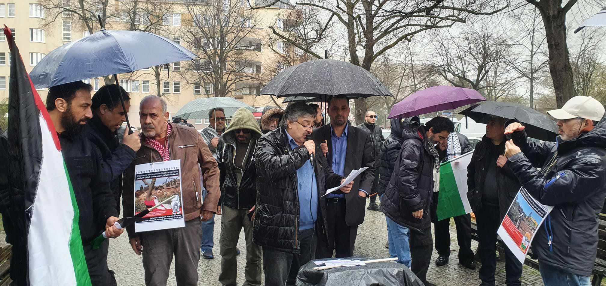 لقد أعرب المُتحدّثون .. عن التّمسّك بالثّوابت الفلسطينيّة وعلى حقّ اللاجئين بالعودة .. وعلى أنهم من شتاتهم عائدون .. وفي أرضهم متجذرون وفيها صامدون وباقون .. حيث رفرفت الأعلام الفلسطينية عالية خفّاقة في سماء برلين .. وحرصت هيئة المؤسسات والجمعيات الفلسطينية والعربية في برلين ولجان فلسطين الديمقراطية .. على إحياء الذكرى من خلال هذه الوقفة الجماهيريّة .. لكي يرفعوا صوت قضيتهم للسّاسة وصُنّاع القرار.. ويطالبوهم بنصرة الشّعب الفلسطيني والدفاع عنه ومساعدته في تحقيق عودته للديار التي هُجّر منها.. ووضْع حدّ لممارسات الإحتلال العدوانية بحقّ شعبهم وأرضهم ومقدساتهم ..