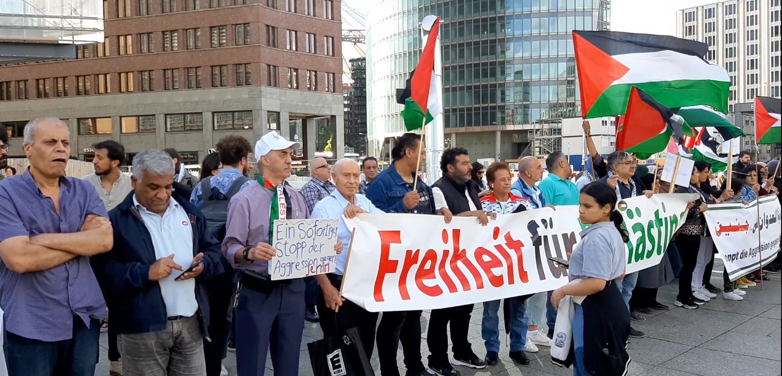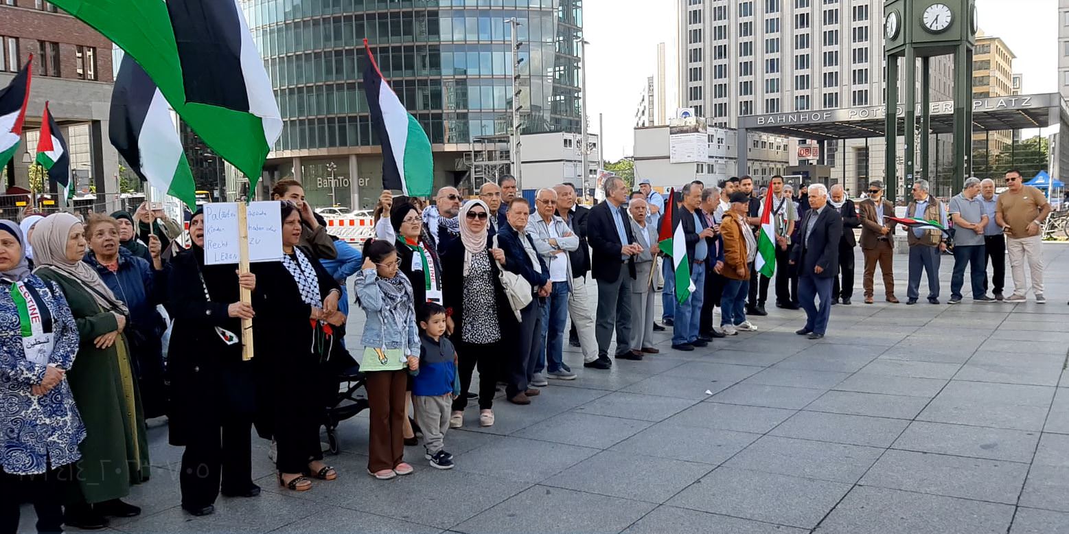 الوقفة التي أقيمت في وسط العاصمة الألمانية برلين في ساحة البوتسدامر شارك بها طيف واسع من أبناء الشعب الفلسطيني والعربي بالإضافة الى حضور حركة المقاطعة BDS و الصوت اليهودي ، حيث رفعت خلالها الأعلام الفلسطينية واليافطات باللغتين العربية والألمانية.