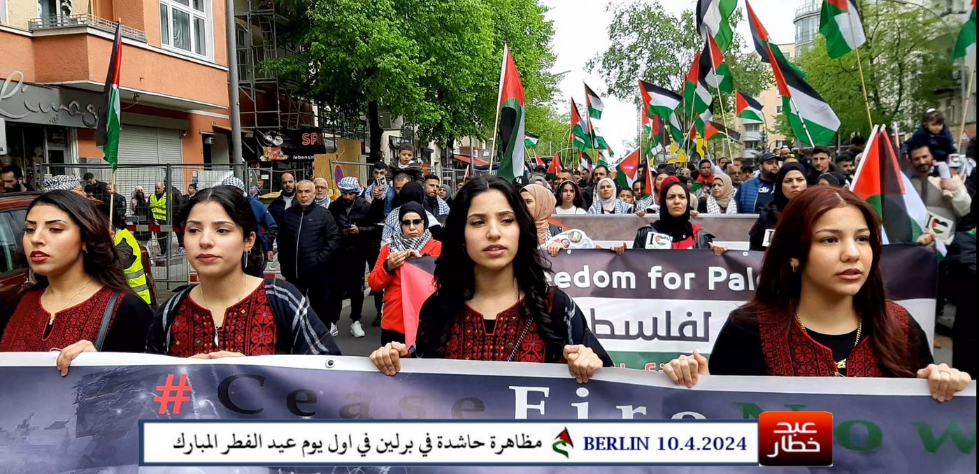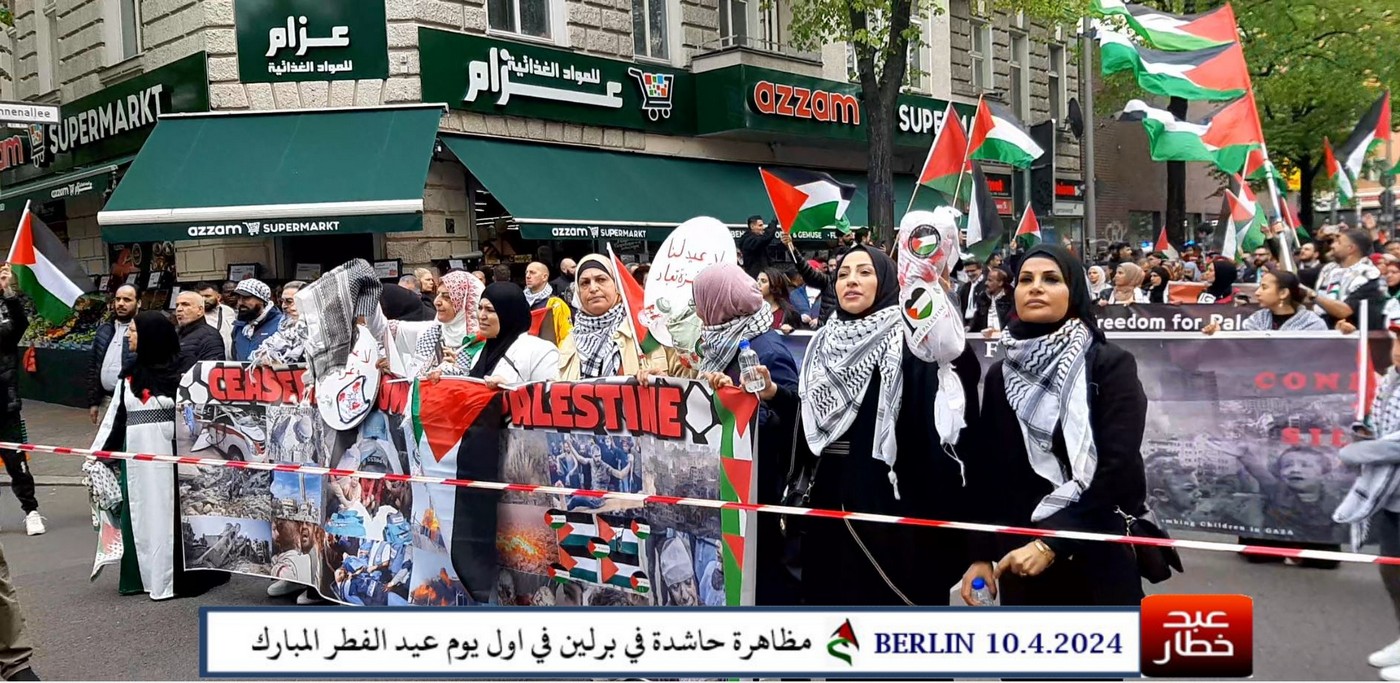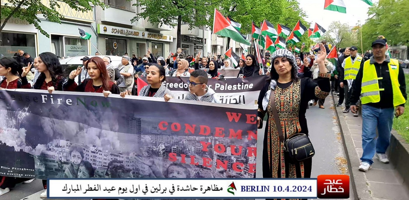 بالصور والفيديو مظاهرة حاشدة في برلين في اول يوم عيد الفطر المبارك نصرة لغزة