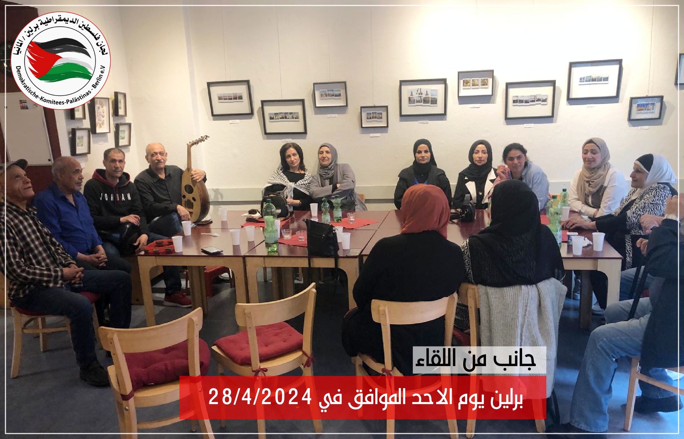 تم لقاء الاحبه والاصدقاء والصديقات في لجان فلسطين الديمقراطيه/ المانيا حيث تم التباحث في الوضع الفلسطيني الراهن وخاصه في قطاع غزه الحبيب وما يتعرض له من حرب اباده وتجويع .كما تم التطرق الى الوضع الفلسطيني و الجاليه ووضع العائلات وما تواجهه من اشكالات داخل المجتمع الألماني في برلين وخاصة قمع الشرطة للصوت الفلسطيني وقمع حرية التعبير عن الرأى حيث جرى حوار مسؤول .