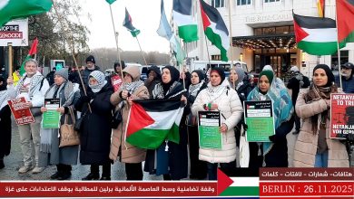 بالفيديو والصور : برلين/وقفة تضامنية حاشدة دعت إليها اللجنة الوطنية الفلسطينية الموحدة، دعمًا لصمود الشعب الفلسطيني في قطاع غزة